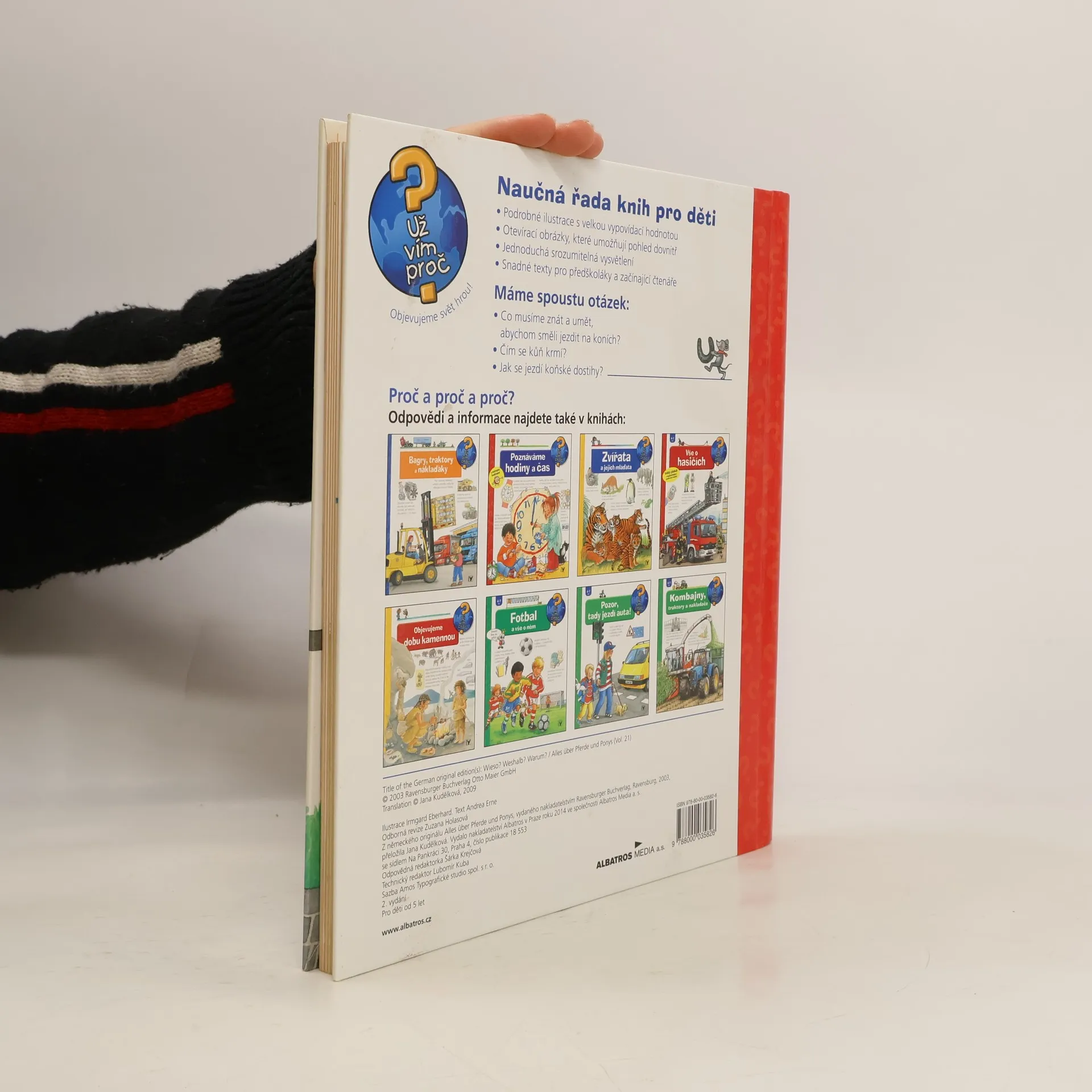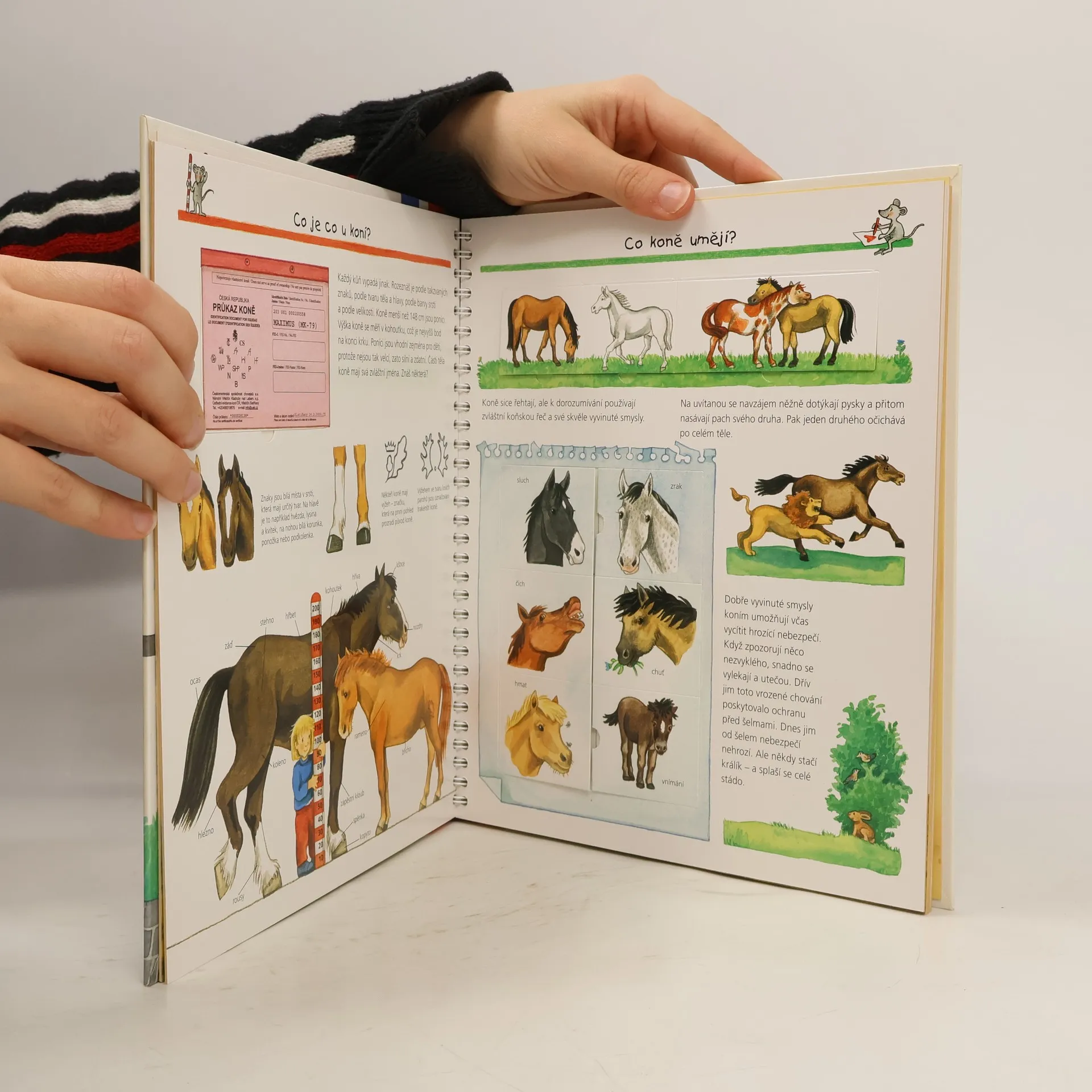 Jak se staráme o koně? Co musíme znát, abychom směli jezdit na koni? Čím se kůň krmí? Jak se jezdí koňské dostihy? Na několika stránkách mnoho informací podaných slovy, a především obrázky! Dítě se dostane na jízdárnu i do přírody, naučí se pojmenovat každou část koňského těla a rozeznat druhy koní, dozví se, co mají koně rádi, kdy se cítí dobře a jak to poznáme. Najde tu i celou řadu zajímavostí. Zkrátka vše o koních a ponících v důsledném propojení textu s ilustracemi.
