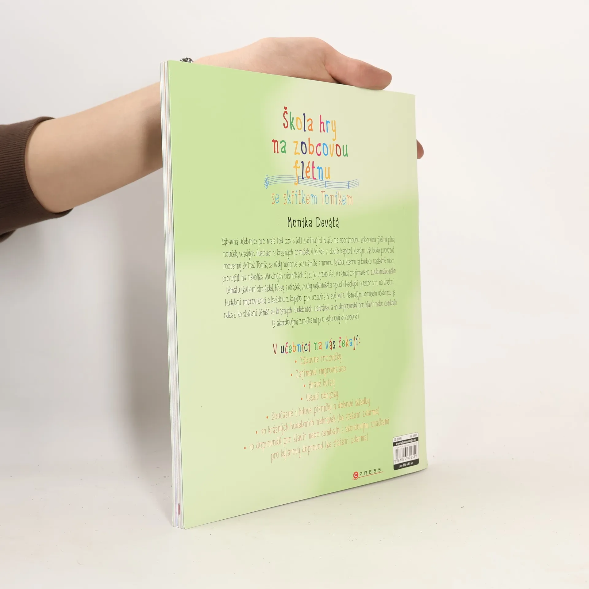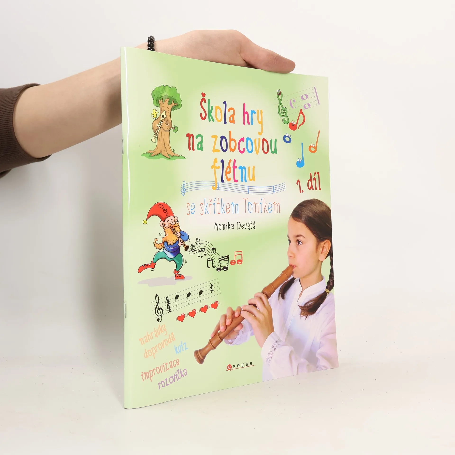 Rozsah a obsah: Se skřítkem Toníkem je hra na flétnu opravdová zábava! Zábavná učebnice pro malé začínající flétnisty (od cca 5 let) plná notiček, veselých ilustrací a krásných písniček. V každé z devíti kapitol, kterými vás bude provázet rozverný hudební skřítek Toník, se vždy nejprve seznámíte s novou látkou, kterou si budete moci procvičit na písničkách v rámci zajímavého zvukomalebného tématu. Nechybí prostor ani na vlastní hudební improvizaci a každou z kapitol pak uzavírá hravý kvíz. Nemalým bonusem učebnice je odkaz ke stažení téměř 20 doprovodných hudebních nahrávek.