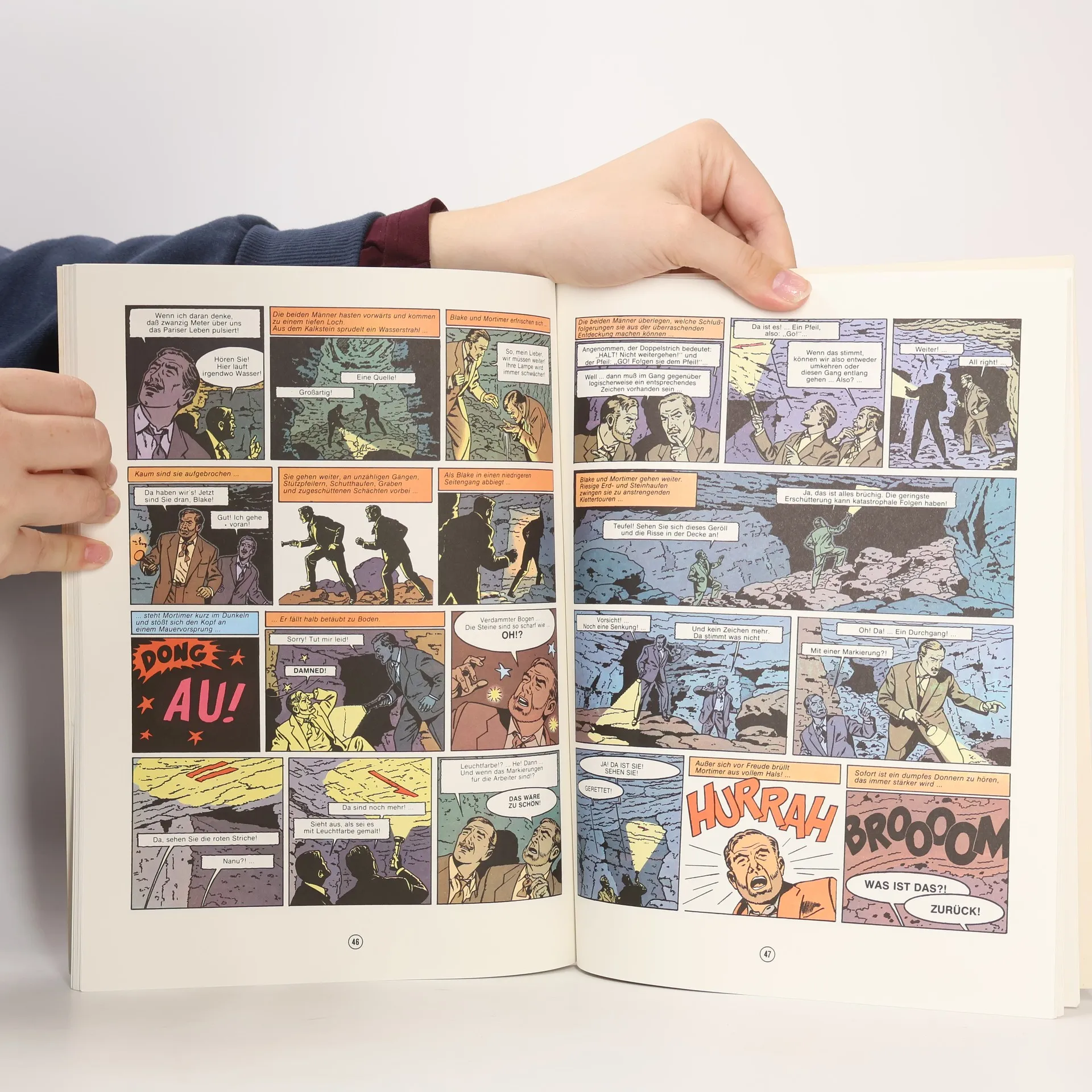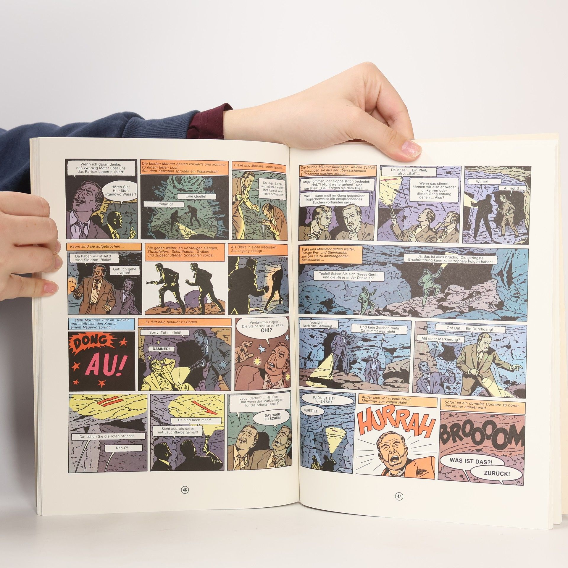Ein dreister Diamantenraub Nach über 150 Jahren findet der englische Sammler Sir Henry Williamson das berühmte Diamantenkollier der Königin Marie-Antoinette. Als er es in Paris einer ausgewählten Gesellschaft präsentieren will, geschieht eine Katastrophe! Meisterdieb Olrik lässt den Tresor, in dem der Schmuck aufbewahrt wird, kurzerhand im Erdboden verschwinden und macht sich mit den Juwelen auf und davon. Blake und Mortimer heften sich an seine Fersen, und es beginnt eine Jagd durch die Katakomben von Paris. Die Serie "Blake und Mortimer" Die Serie um die beiden Briten Hauptmann Francis Blake und Professor Philip Mortimer gehört zu den besten und erfolgreichsten Reihen für erwachsene Comicleser. Mit dem Charme und dem Duktus der 1950er Jahre entführt sie die Leser in spannende und manchmal mystische Welten. Gerade diese Mischung aus realer Geschichte und Elementen aus Mythologie, Science-Fiction und Thriller macht die Faszination aus. Wenn diese Melange von zwei echten britischen Gentlemen dargereicht wird, muss man nur noch Hut und Mantel an der Garderobe abgeben und sich in den bequemen Sessel eines Londoner Clubs sinken lassen, um vollends in die Serie einzutauchen.