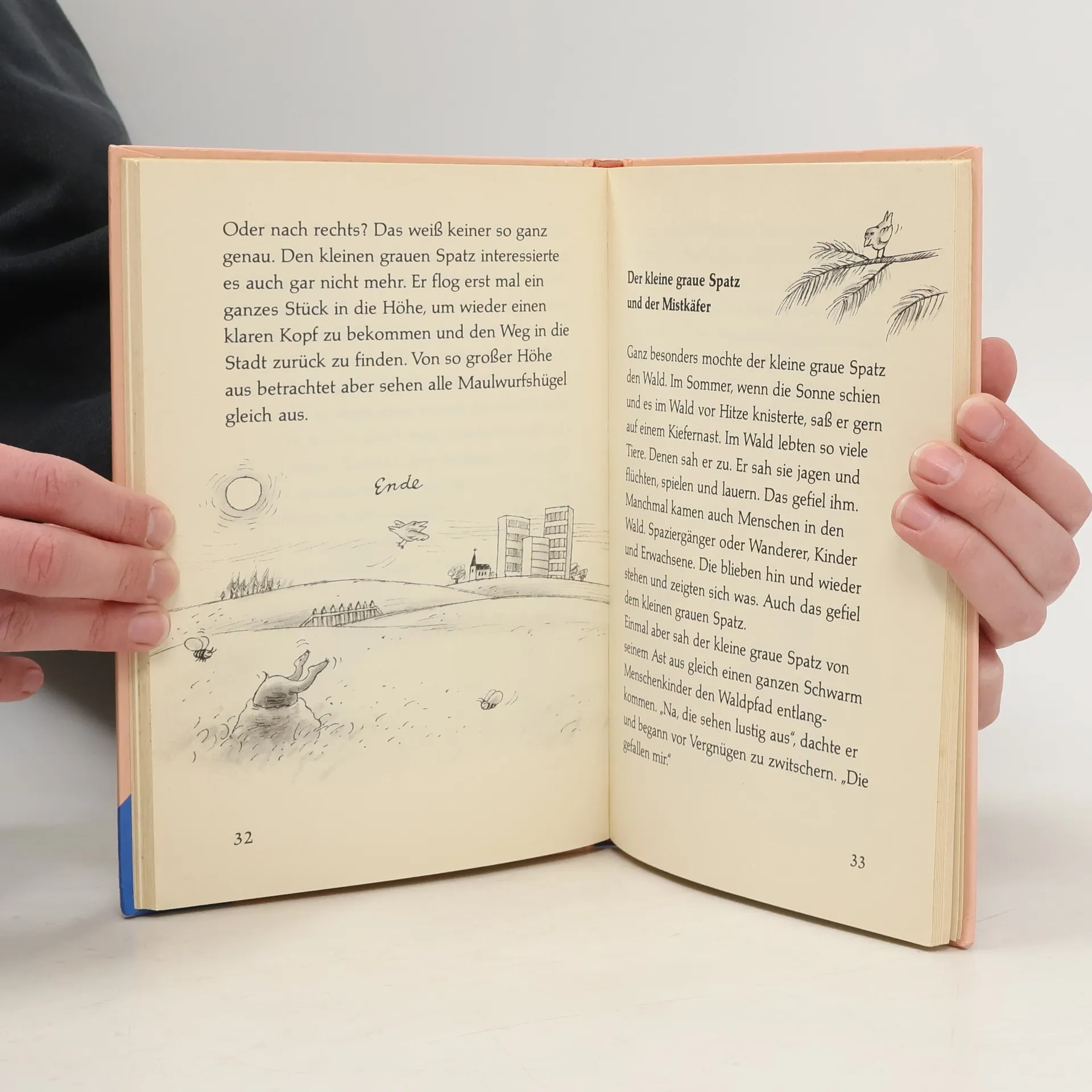 Der kleine graue Spatz ist neugierig undfrech. Aber nur so lernt man die Weltkennen - und manchmal sogar Freunde.