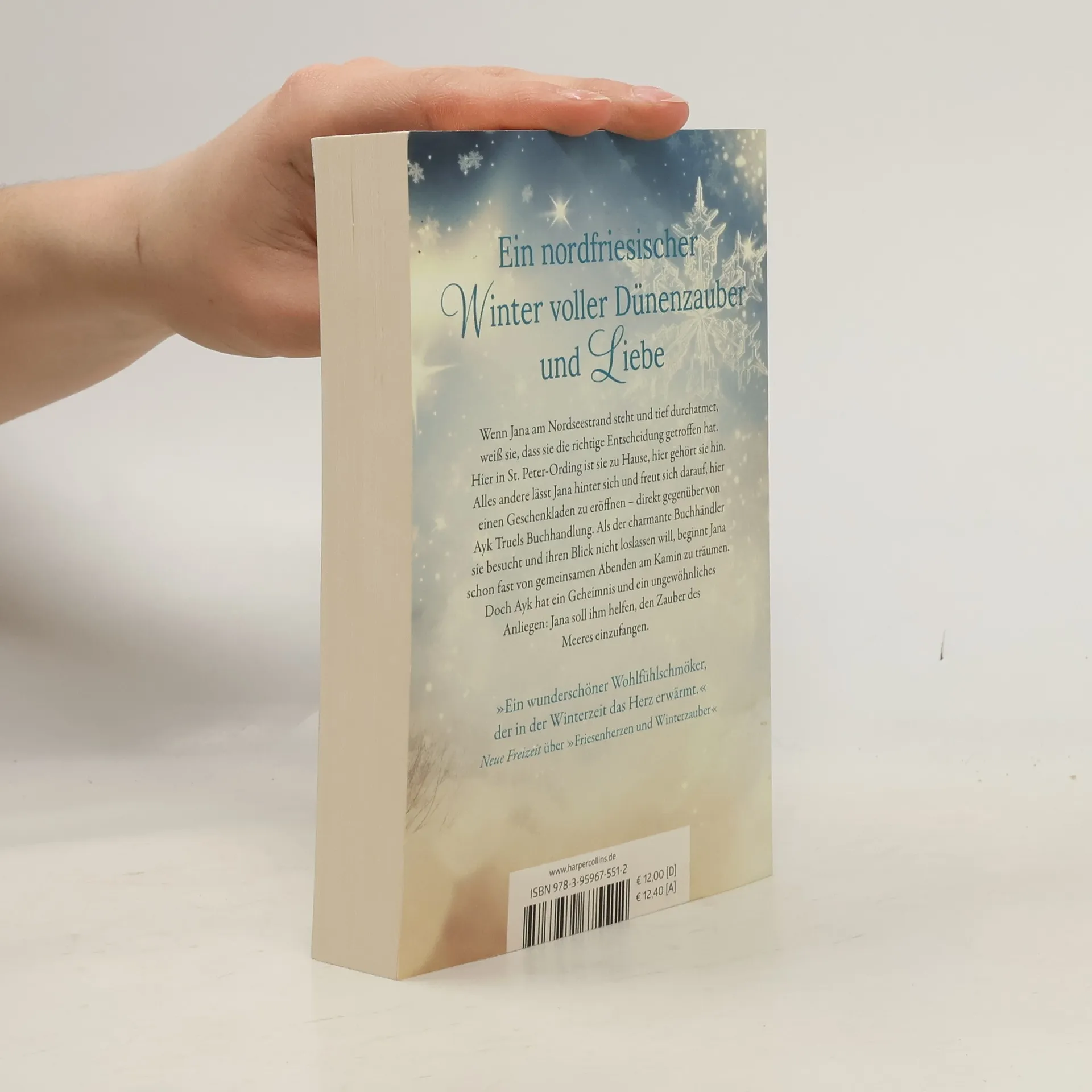 Ein nordfriesischer Winter voll Dünenzauber und Liebe Wenn Jana am Nordseestrand steht und tief durchatmet, weiß sie, dass sie die richtige Entscheidung getroffen hat. Hier in St. Peter-Ording ist sie zu Hause, hier gehört sie hin. Alles andere lässt Jana hinter sich und freut sich darauf, hier einen Geschenkladen zu eröffnen. Direkt gegenüber von Ayk Truels Buchhandlung. Als der Buchhändler auffallend oft herüberkommt, beginnt Jana schon fast von gemeinsamen Abenden am Kamin zu träumen. Doch Ayk hat ein Geheimnis und ein ungewöhnliches Anliegen: Jana soll ihm helfen, den Zauber des Meeres einzufangen.