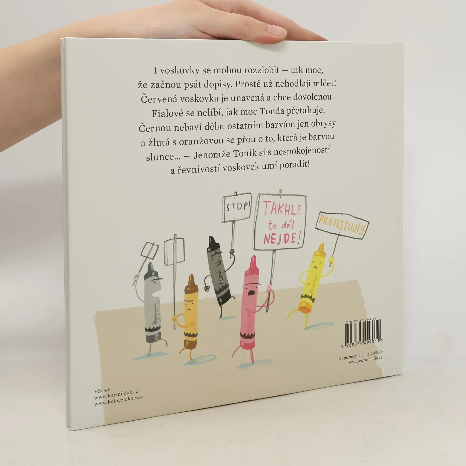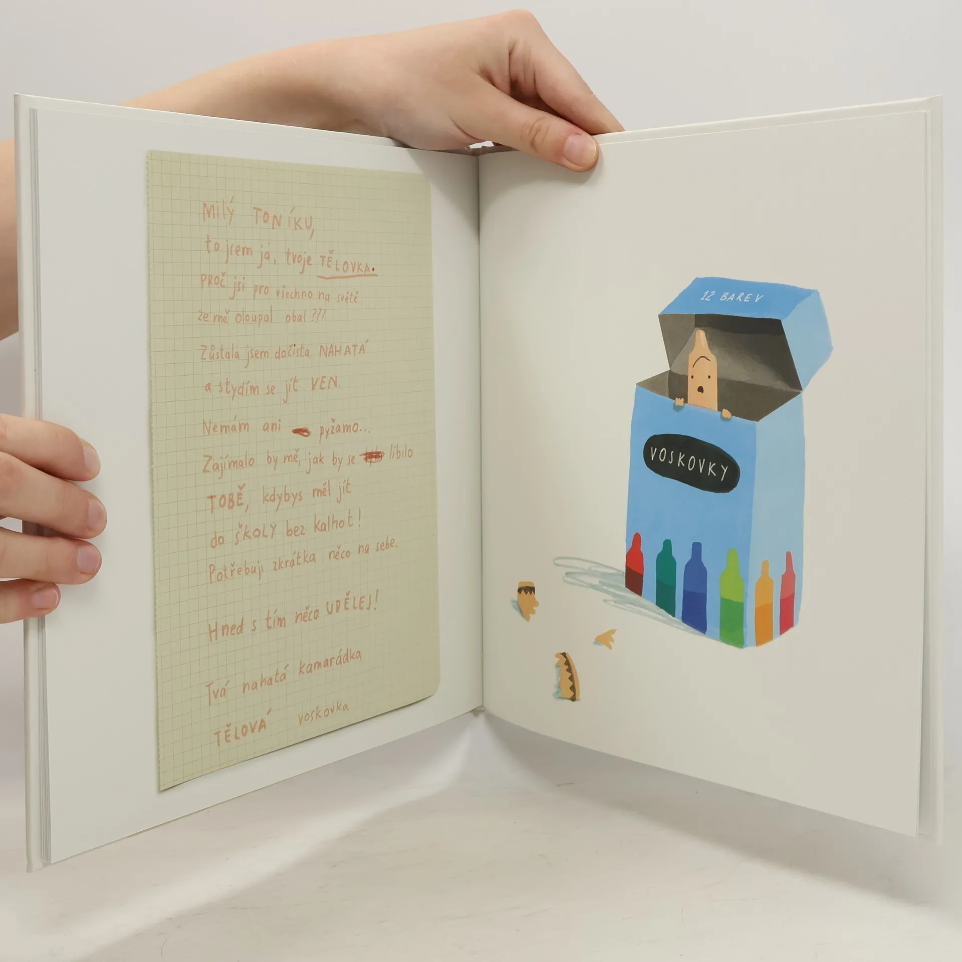 I voskovky se mohou rozzlobit - tak moc, že začnou psát dopisy svému majiteli Toníkovi. Prostě už nehodlají mlčet! Červená voskovka je k smrti unavená a chce dovolenou. Fialové se nelíbí, jak moc Tonda přetahuje, černou nebaví dělat ostatním barvám obrysy, žlutá s oranžovou spolu nemluví, protože se hádají, která je barvou slunce...Ale Tonda si si s nespokojeností a řevnivostí voskovek umí poradit!