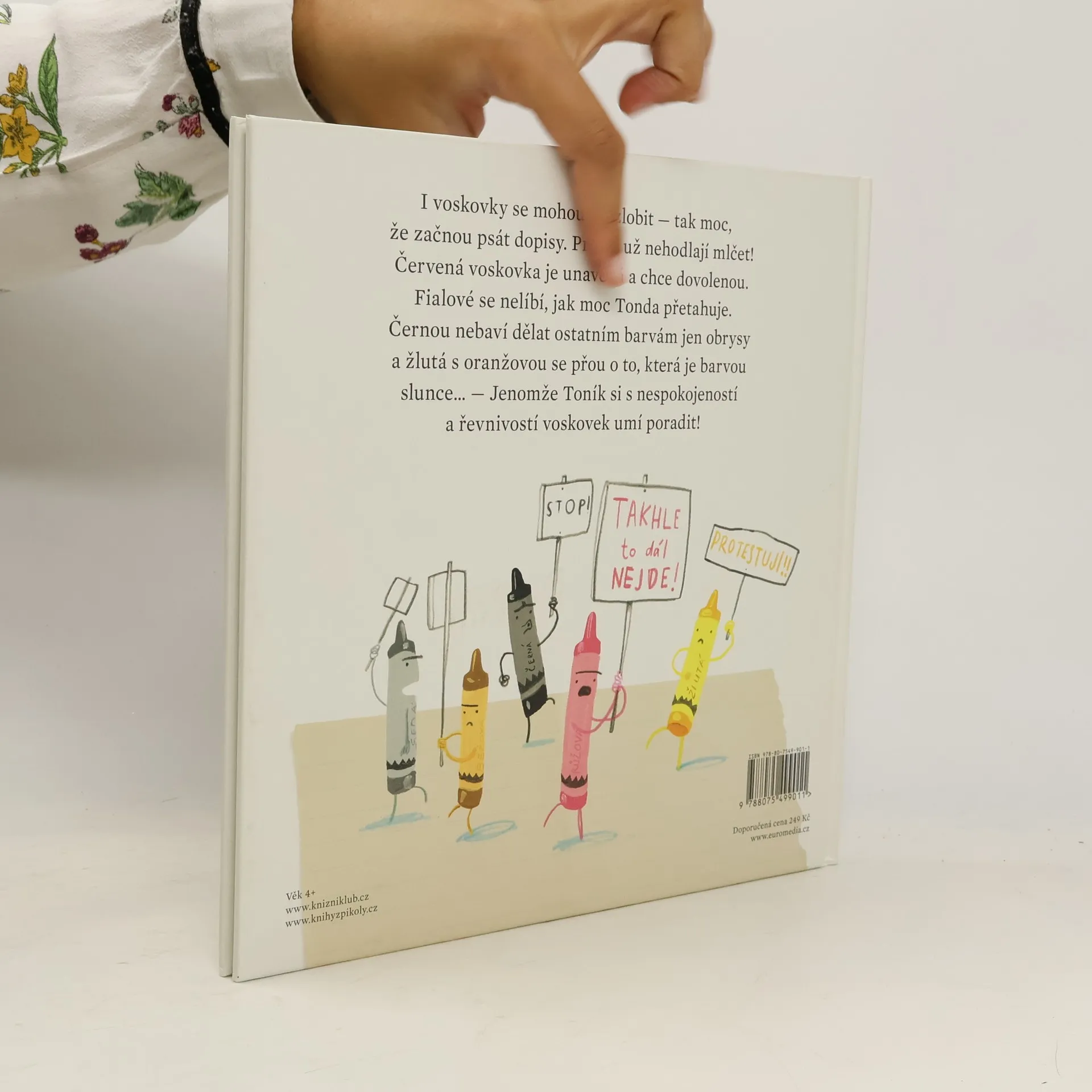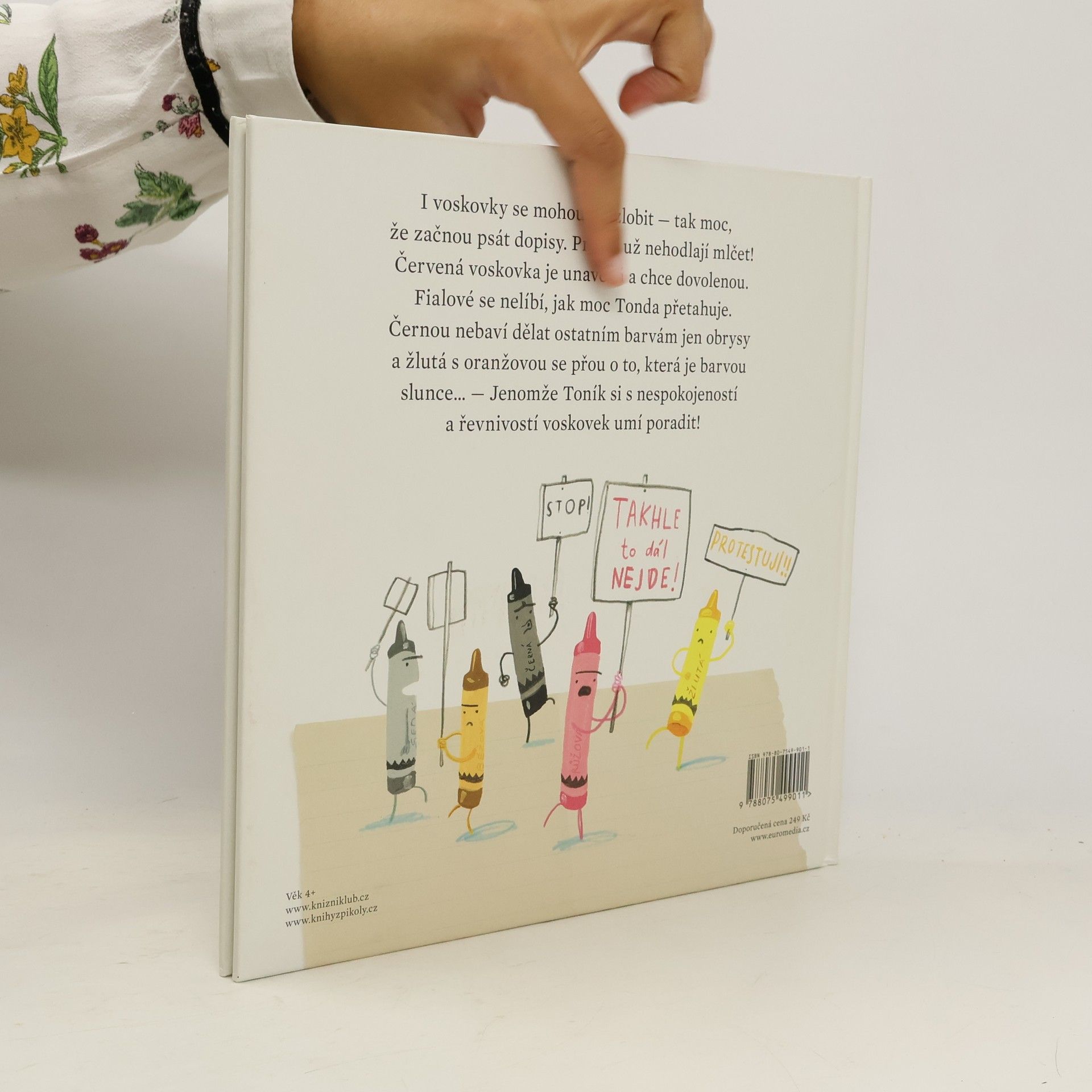 I voskovky se mohou rozzlobit - tak moc, že začnou psát dopisy svému majiteli Toníkovi. Prostě už nehodlají mlčet! Červená voskovka je k smrti unavená a chce dovolenou. Fialové se nelíbí, jak moc Tonda přetahuje, černou nebaví dělat ostatním barvám obrysy, žlutá s oranžovou spolu nemluví, protože se hádají, která je barvou slunce...Ale Tonda si si s nespokojeností a řevnivostí voskovek umí poradit!