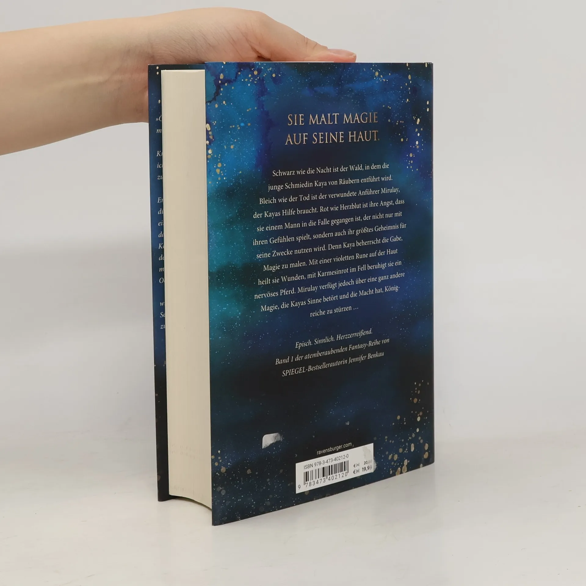 Sie malt Magie auf seine Haut. Nachtschwarz ist der Wald, in dem die junge Schmiedin Kaya von Räubern entführt wird. Totenbleich ist der verwundete Anführer Mirulay, der Kayas Hilfe braucht. Blutrot ist ihre Angst, dass sie einem Mann in die Falle gegangen ist, der nicht nur mit ihren Gefühlen spielt, sondern auch ihr größtes Geheimnis für seine Zwecke nutzen wird. Denn Kaya beherrscht die Gabe, Magie zu malen. Mirulay verfügt jedoch über eine ganz andere Magie, die Kayas Sinne betört und die Macht hat, Königreiche zu stürzen Episch. Sinnlich. Herzzerreißend. Band 1 der atemberaubenden neuen Romantasy-Reihe von SPIEGEL-Bestsellerautorin Jennifer Benkau Jennifer Benkaus Romantasy-Reihen „One True Queen“, „Das Reich der Schatten“ und „The Lost Crown“ spielen in derselben Fantasy-Welt, können aber unabhängig voneinander gelesen werden. Sie sind in dieser Reihenfolge erschienen: One True Queen, Band 1: Von Sternen gekrönt One True Queen, Band 2: Aus Schatten geschmiedet Das Reich der Schatten, Band 1: Her Wish So Dark Das Reich der Schatten, Band 2: His Curse So Wild The Lost Crown, Band 1: Wer die Nacht malt The Lost Crown, Band 2: Wer das Schicksal zeichnet New-Adult-Romance von Jennifer Benkau: A Reason To Stay (Liverpool-Reihe 1) A Reason To Hope (Liverpool-Reihe 2)