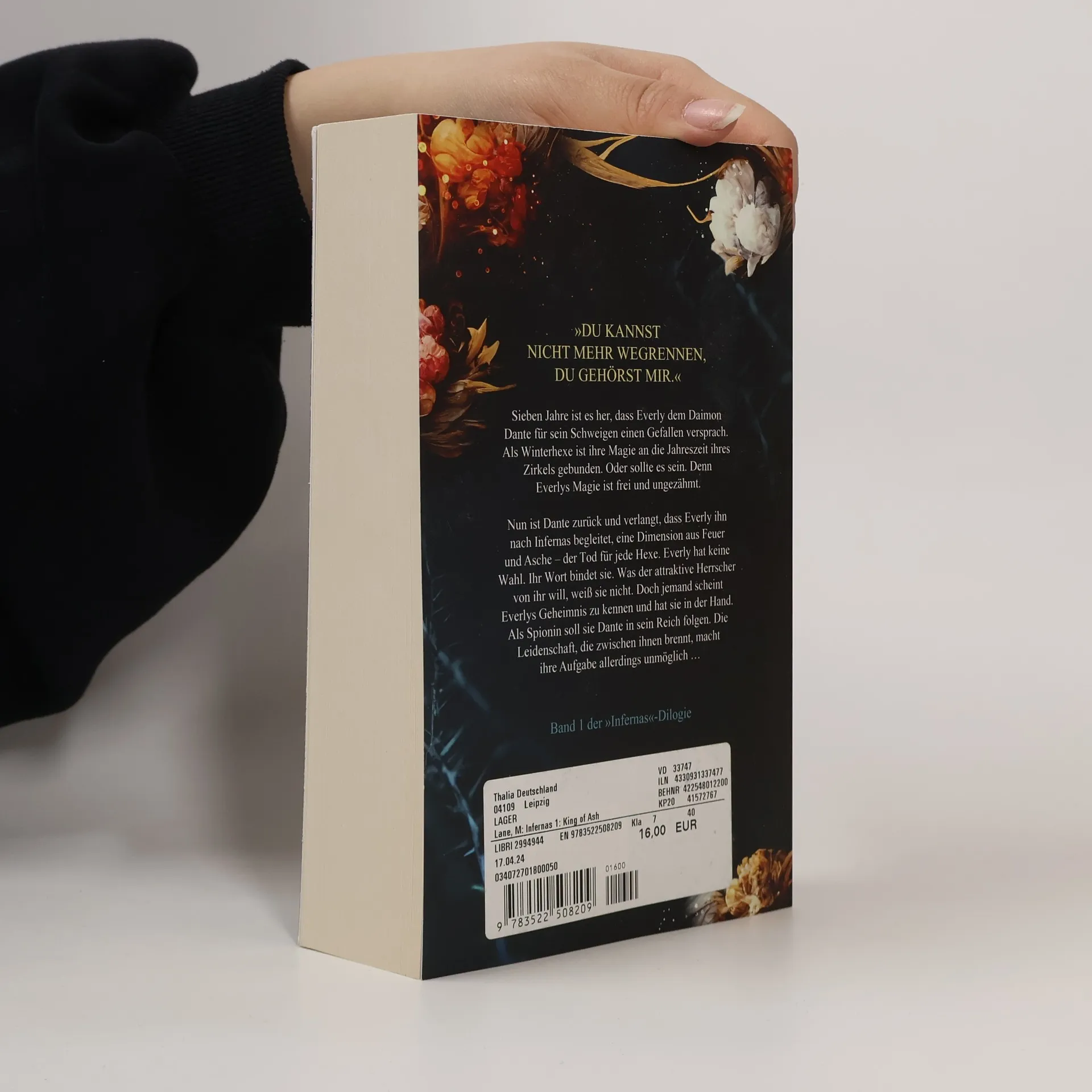 Sieben Jahre ist es her, dass Everly dem Daimon Dante für sein Schweigen einen Gefallen versprach. Als Winterhexe ist ihre Magie an die Jahreszeit ihres Zirkels gebunden. Oder sollte es sein. Denn Everlys Magie ist frei und ungezähmt. Nun ist Dante zurück und verlangt, dass Everly ihn nach Infernas begleitet, eine Dimension aus Feuer und Asche – der Tod für jede Hexe. Everly hat keine Wahl. Ihr Wort bindet sie. Was der attraktive Herrscher von ihr will, weiß sie nicht. Doch jemand scheint Everlys Geheimnis zu kennen und hat sie in der Hand. Als Spionin soll sie Dante in sein Reich folgen. Die Leidenschaft, die zwischen ihnen brennt, macht ihre Aufgabe allerdings unmöglich …