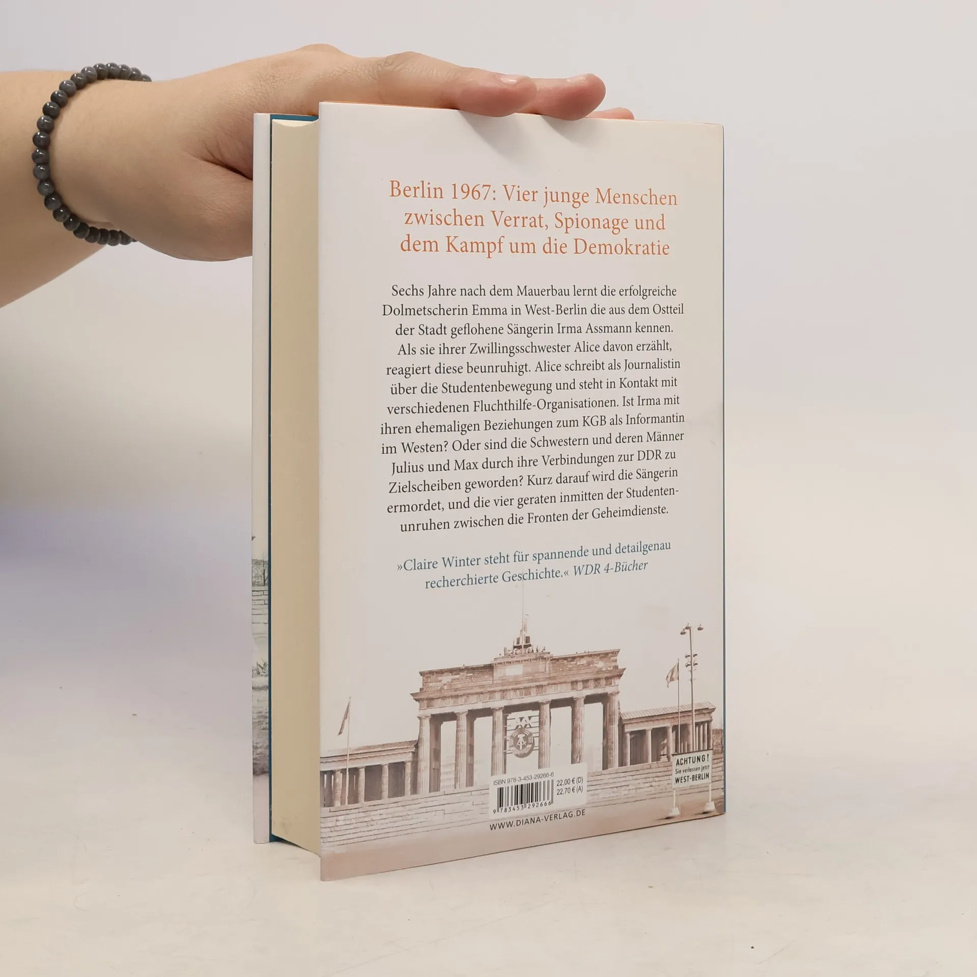 Sechs Jahre nach dem Mauerbau lernt die erfolgreiche Dolmetscherin Emma in West-Berlin die aus dem Ostteil der Stadt geflohene Sängerin Irma Assmann kennen. Als sie ihrer Zwillingsschwester Alice davon erzählt, reagiert diese beunruhigt. Alice schreibt als Journalistin über die Studentenbewegung und steht in Kontakt mit verschiedenen Fluchthilfe-Organisationen. Ist Irma mit ihren ehemaligen Beziehungen zum KGB als Informantin im Westen? Oder sind die Schwestern und deren Männer Julius und Max durch ihre Verbindungen zur DDR zu Zielscheiben geworden? Kurz darauf wird die Sängerin ermordet, und die vier geraten inmitten der Studentenunruhen zwischen die Fronten der Geheimdienste.