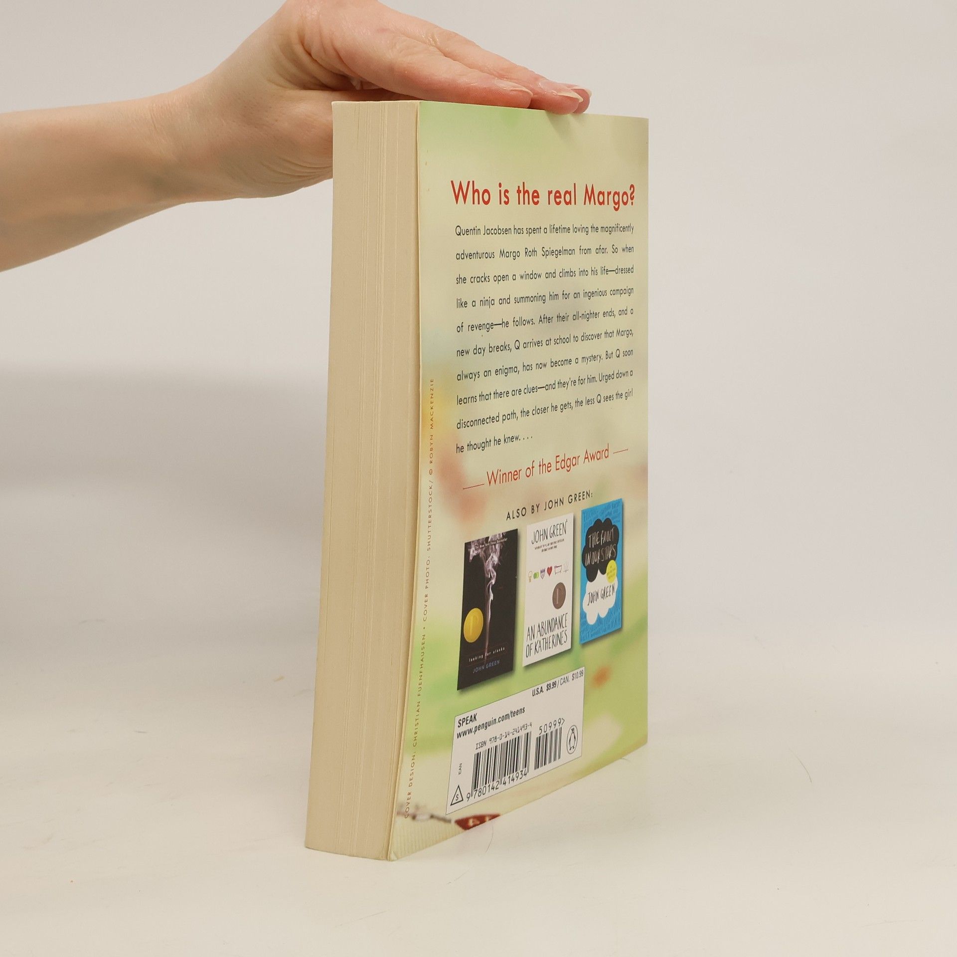 From the #1 bestselling author of Turtles All the Way Down and The Fault in Our Stars Winner of the Edgar Award for Best Young Adult Mystery #1 New York Times Bestseller USA Today Bestseller Publishers Weekly Bestseller Now a major motion picture When Margo Roth Spiegelman beckons Quentin Jacobsen in the middle of the night—dressed like a ninja and plotting an ingenious campaign of revenge—he follows her. Margo’s always planned extravagantly, and, until now, she’s always planned solo. After a lifetime of loving Margo from afar, things are finally looking up for Q . . . until day breaks and she has vanished. Always an enigma, Margo has now become a mystery. But there are clues. And they’re for Q. Printz Medalist John Green returns with the trademark brilliant wit and heart-stopping emotional honesty that have inspired a new generation of readers.
