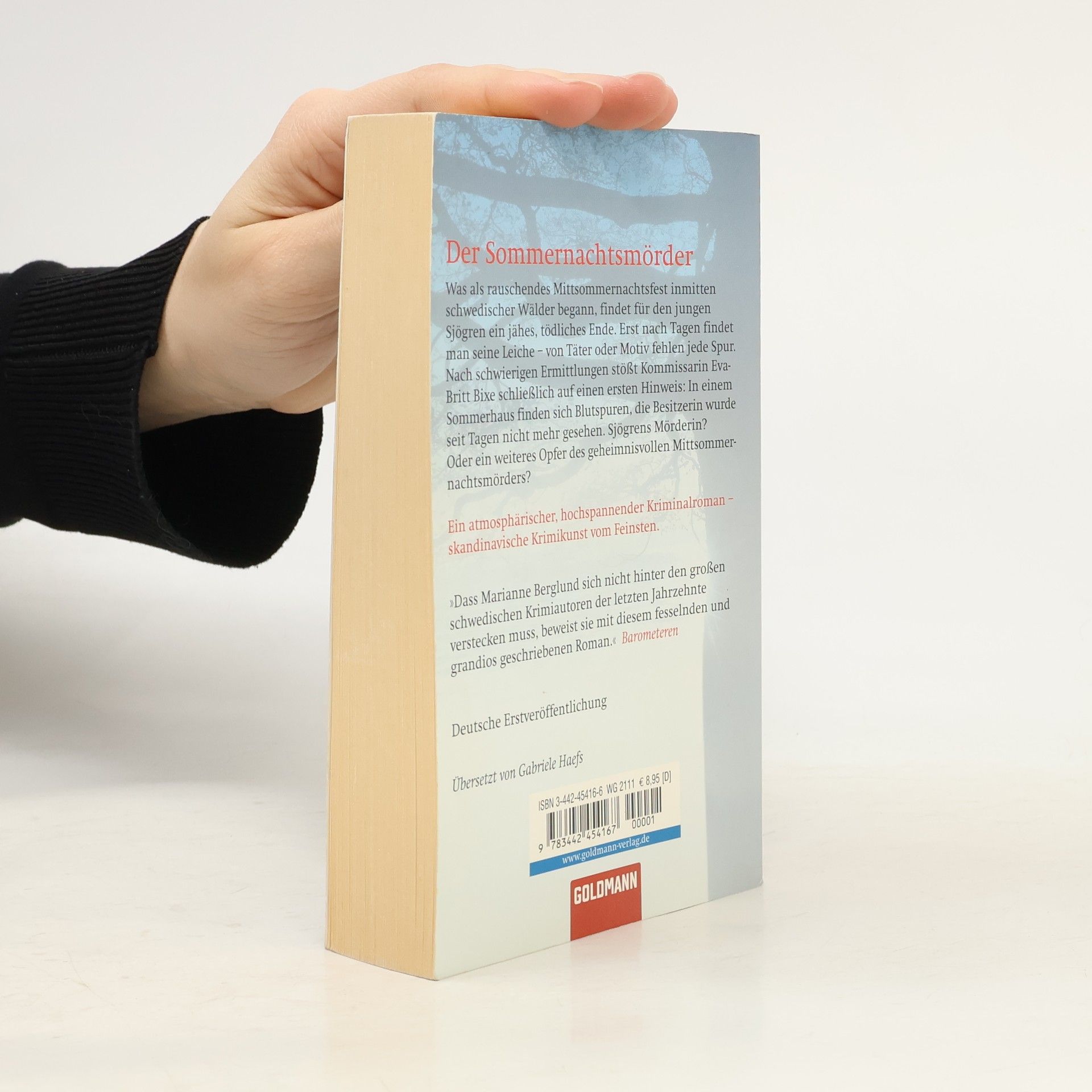 Was als rauschendes Mittsommernachtsfest inmitten schwedischer Wälder begann, findet für den jungen Sjögren ein jähes, tödliches Ende. Erst nach Tagen findet man seine Leiche - von Täter oder Motiv fehlt jedoch jede Spur. Bei ihren Ermittlungen stößt Kommissarin Eva-Britt Bixe schließlich auf einen ersten Hinweis: In einem Sommerhaus finden sich Blutspuren, die Besitzerin wurde von ihrem Ehemann seit Tagen nicht mehr gesehen. Sjögrens Mörderin? Oder ein weiteres Opfer des geheimnisvollen Mittsommernachtsmörders? „Dass Marianne Berglund sich nicht hinter den großen schwedischen Krimiautoren, die sich in den letzten Jahrzehnten einen Namen gemacht haben, verstecken muss, beweist sie mit diesem fesselnden und grandios geschriebenen Roman.“ Barometern „Die Glieder der Handlungskette werden elegant aneinander gefügt, und Marianne Berglund erweist sich dabei als scharfsinnige Beobachterin.“ Hallands Nyheter „Ein faszinierender Roman um das komplexe menschliche Miteinander und die Geheimnisse, die jeder Einzelne in sich trägt.“