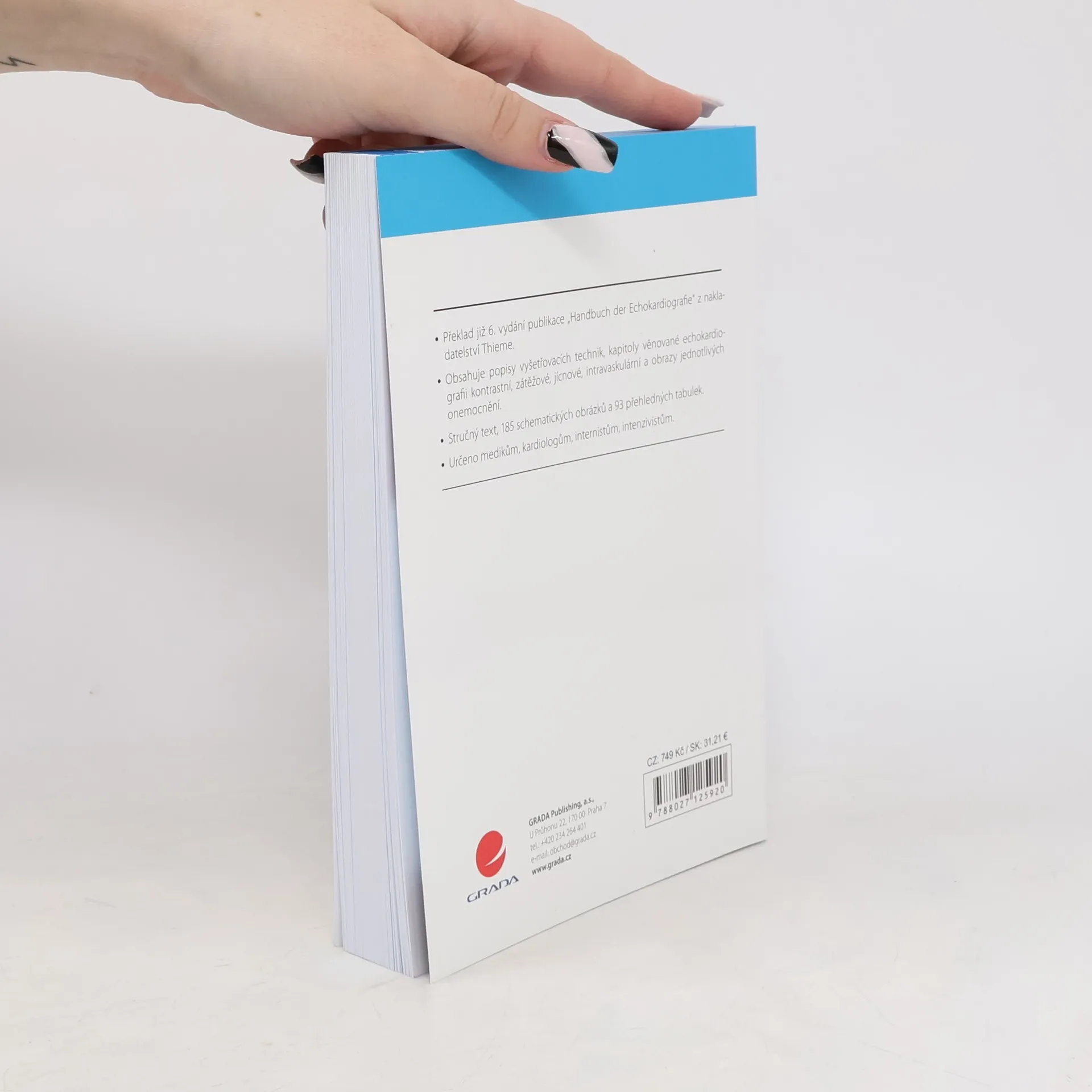 Překlad již 6. vydání publikace HANDBUCH DER ECHOKARDIOGRAFIE z nakladatelství Thieme. Obsahuje popisy vyšetřovacích technik, kapitoly věnované echokardiografii kontrastní, zátěžové, jícnové, intravaskulární a obrazy jednotlivých onemocnění. Stručný text, 185 schematických obrázků a 93 přehledných tabulek. Určeno medikům, kardiologům, internistům, intenzivistům. Knihu doporučili naší přední echokardiografisté.