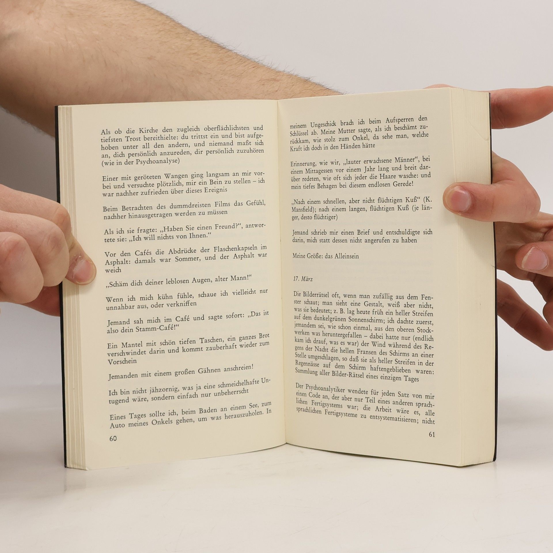 Die Arbeitsmoral dieser exemplarischen Aufzeichnungen ist ihre Genauigkeit, die, selbst wo sie aus der Verzweiflung kommt, eine Art von Freundlichkeit ist gegenüber der Welt. Was hier niedergeschrieben wurde, will nicht zur Nachahmung anstiften; aber man kann daraus leben lernen.