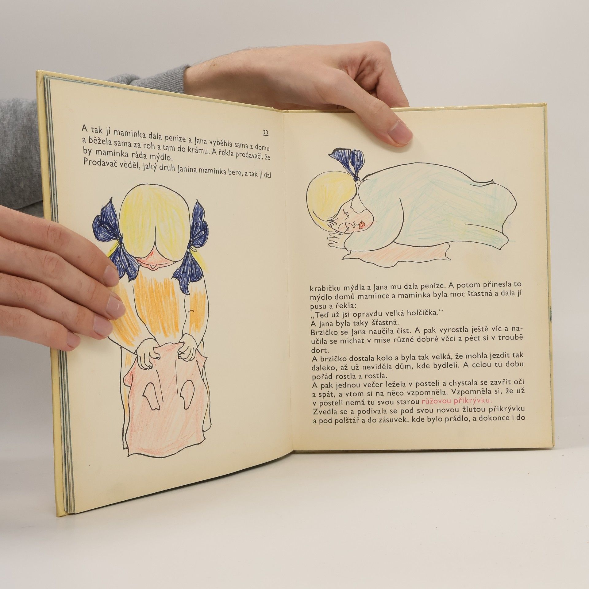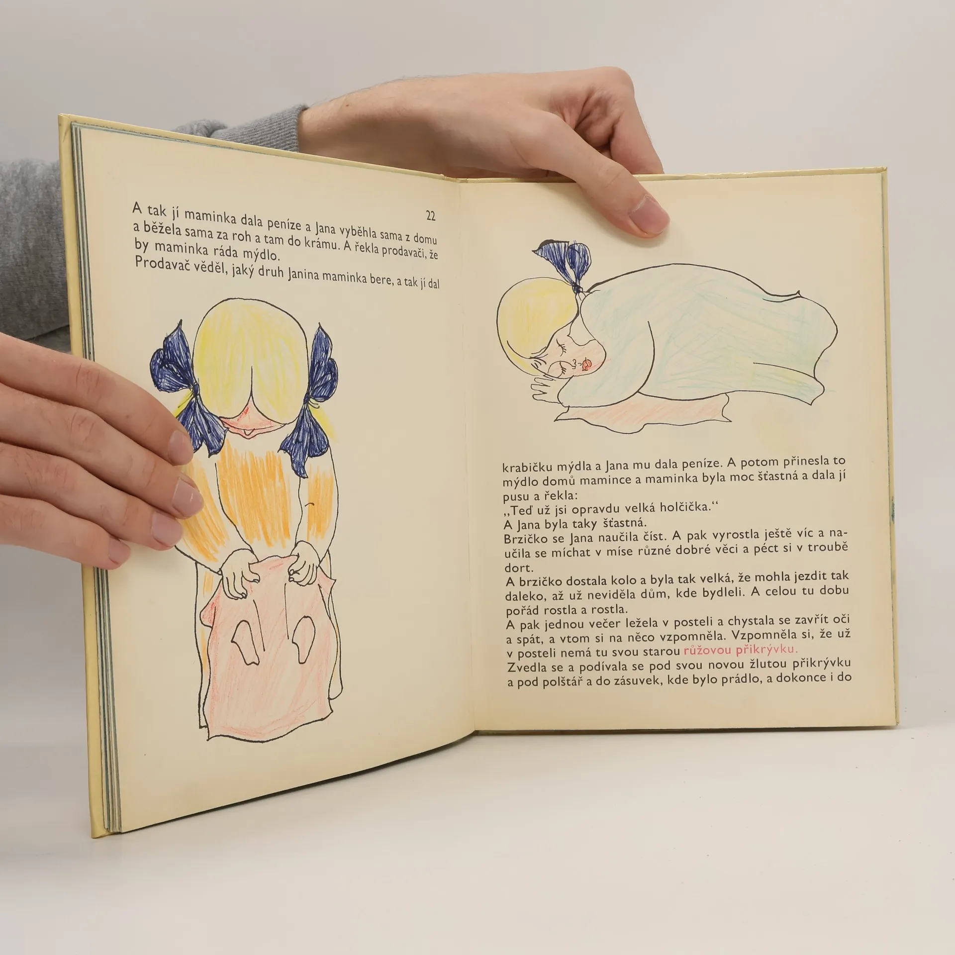 Povídka známého amerického dramatika a spisovatele o malé holčičce Janě, která měla ráda svou hebkou růžovou přikrývku, ale pak se s ní musela jednou rozloučit, protože byla malá a roztrhaná. Po čase si při pohledu na ni uvědomuje, jak vyrostla a jak zatím uběhl čas. Nebrání proto ptáku, který pokrývku nalezl na okně, a tahá z ní nitě na své hnízdo. Takto přinese ještě jednou užitek ptáku.