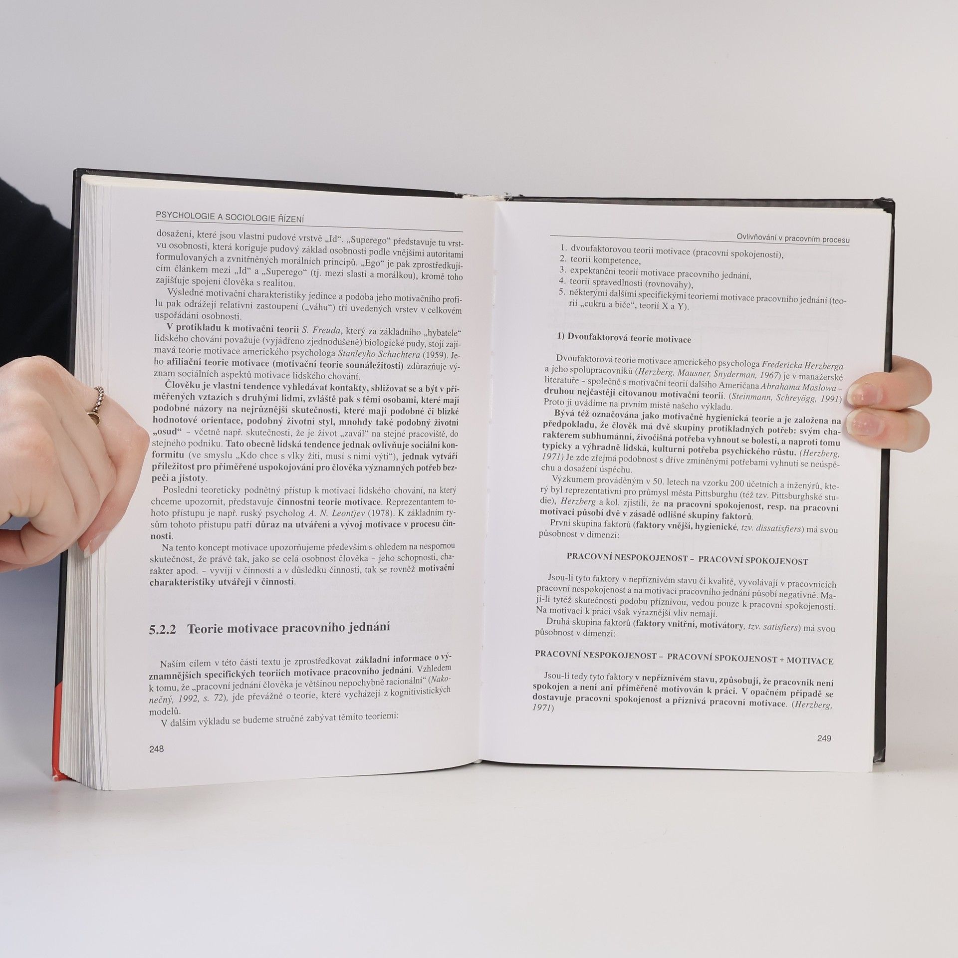 Učebnice předních vysokoškolských pedagogů zaměřená na analýzu psychologických a sociologických aspektů řízení se vedle předmětu a vývoje manažerské psychologie a sociologie zabývá problematikou jednotlivců i skupin v pracovním procesu, osobností manažera, strukturou a dynamikou organizace i aplikací sociologických a psychologických metodických postupů na oblast managementu. Pozornost je rovněž věnována procesům komunikace a ovlivňování a oproti předchozím vydáním i otázkám týkajícím se specifických manažerských aplikací (jako jsou např. management diverzity, psychologie podnikání, poradenství v organizaci a na trhu práce). Učebnice, určená především studentům vysokých a středních škol nejen ekonomického zaměření, je obohacena řadou praktických příkladů a případových studií.