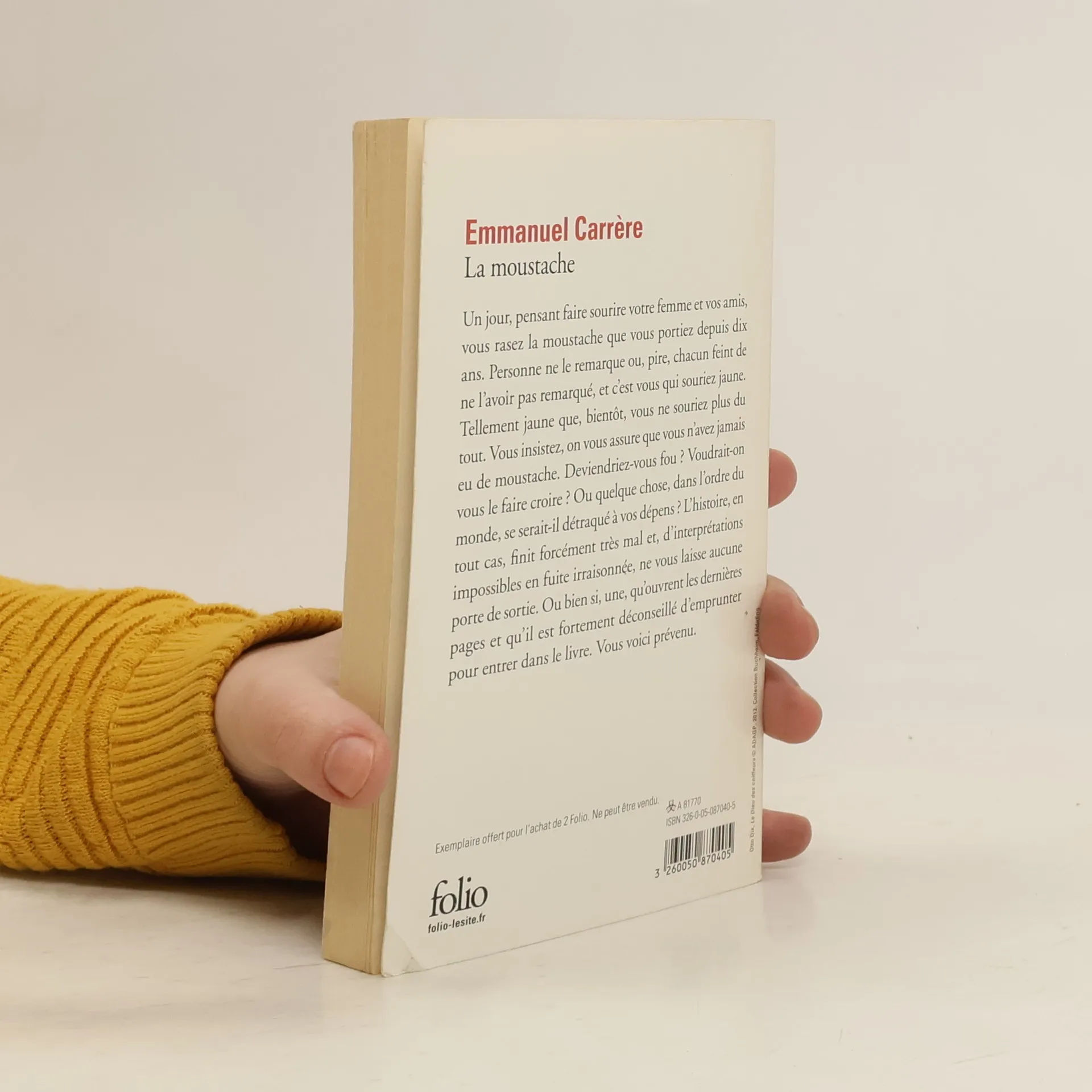 Un jour, pensant faire sourire votre femme et vos amis, vous rasez la moustache que vous portiez depuis dix ans. Personne ne le remarque ou, pire, chacun feint de ne l'avoir pas remarqué, et c'est vous qui souriez jaune. Tellement jaune que, bientôt, vous ne souriez plus du tout. Vous insistez, on vous assure que vous n'avez jamais eu de moustache. Deviendriez-vous fou ? Voudrait-on vous le faire croire ? Ou quelque chose, dans l'ordre du monde, se serait-il détraqué à vos dépens ? L'histoire, en tout cas, finit forcément très mal et, d'interprétations impossibles en fuite irraisonnée, ne vous laisse aucune porte de sortie. Ou bien si, une, qu'ouvrent les dernières pages et qu'il est fortement déconseillé d'emprunter pour entrer dans le livre. Vous voici prévenu.