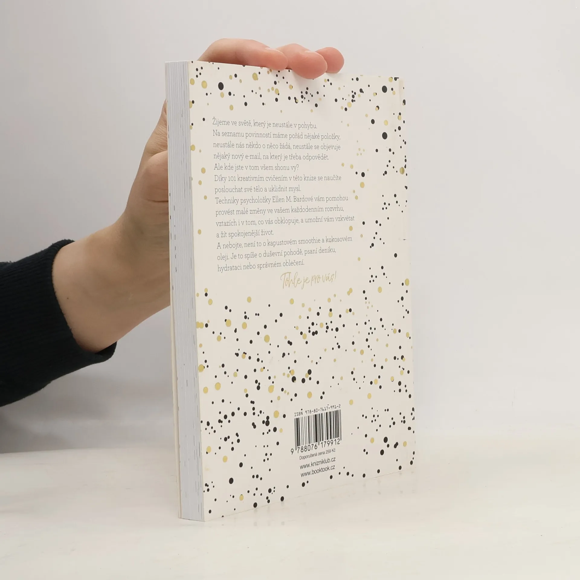 Žijeme ve světě, který je neustále v pohybu, máme na seznamu povinností pořád nějaké položky, neustále nás někdo o něco žádá, neustále se objevuje nějaký nový e-mail, na který je třeba odpovědět. Ale kde jste v tom všem shonu vy? Díky 101 kreativním cvičením v této knize se naučíte poslouchat své tělo a uklidnit svou mysl. Techniky psycholožky Ellen M Bardové vám pomohou provést malé změny ve vašem každodenním rozvrhu, vztazích a prostředí, které vám umožní vzkvétat a žít spokojenější život. A nebojte, není to o kapustovém smoothie a kokosovém oleji. Je to spíše o pravidelných prohlídkách u zubaře, psaní deníku, hydrataci nebo správném oblečení. Neodkládejte se na druhou kolej – teď je čas jenom pro vás.