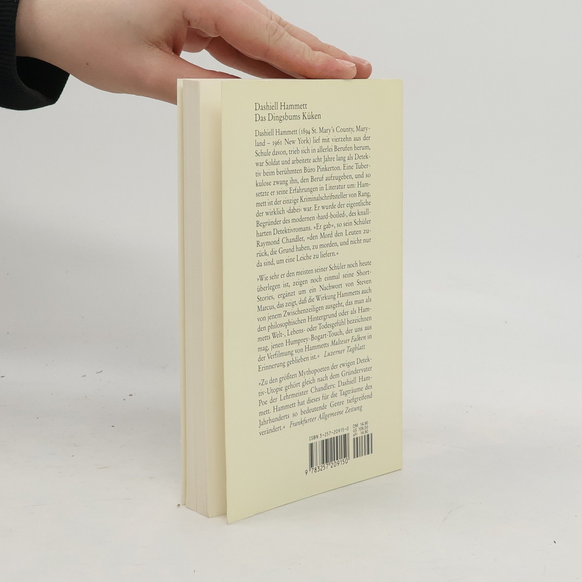 Drei Detektiv-Geschichten, mit einem Nachwort von Steven Marcus. Der Continental Op beginnt auf gut Glück einen Gangster zu beschatten, den er vor Jahren schon einmal gesehen hatte, und der als das Dingsbums Küken bekannt ist. Und plötzlich wird auf das Küken geschossen. Außerdem: Der Main-Tod / Der Farewell-Mord.