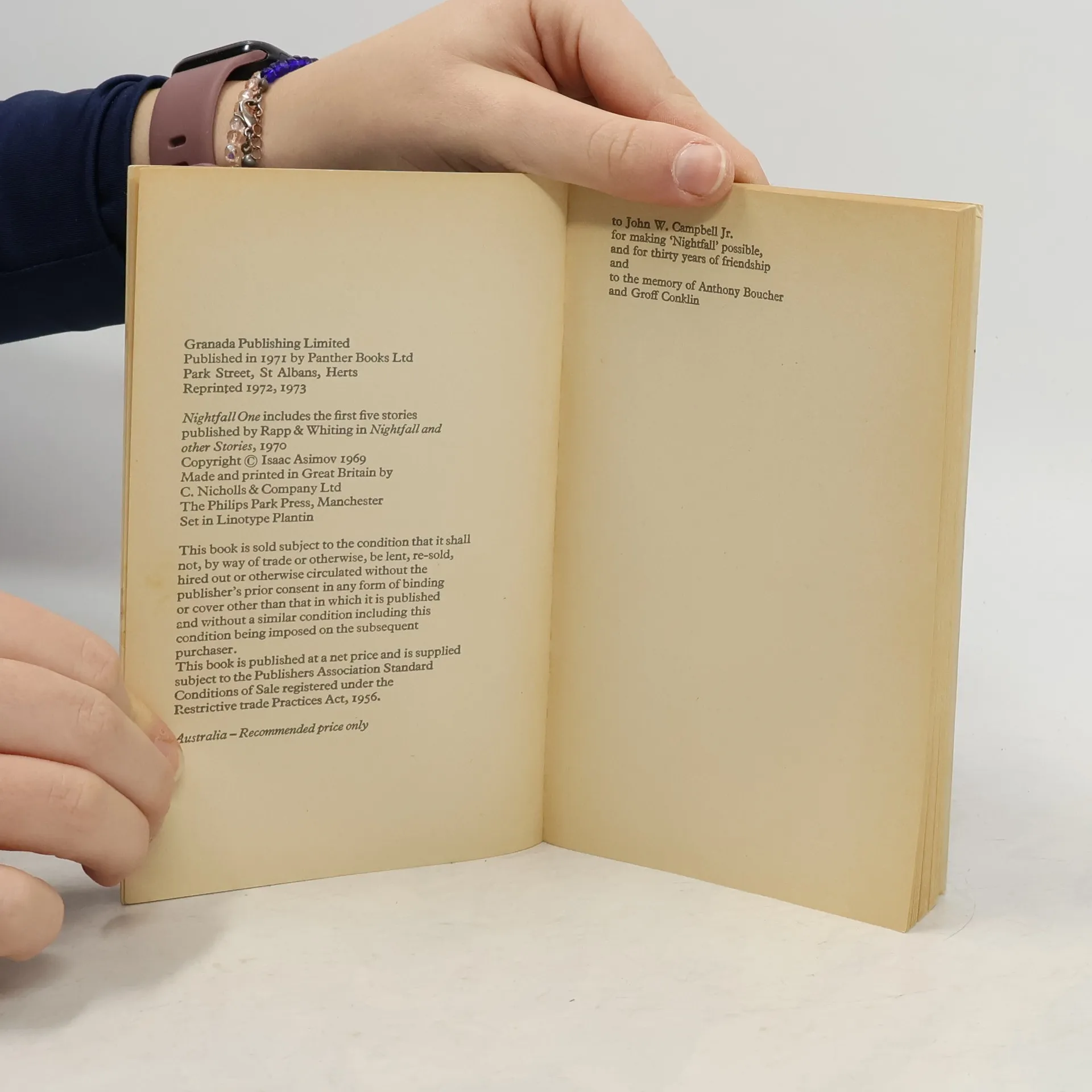 Nightfall One is the first half of a collection of Isaac Asimov's science fiction, short stories. Each story has been selected by the author himself, and each has an introduction specifically written for this collection by Dr. Asimov. Together the two volumes showcase Isaac Asimov's story-telling talent.Nightfall --Green patches --Hostess --Breeds there a man --C-chase