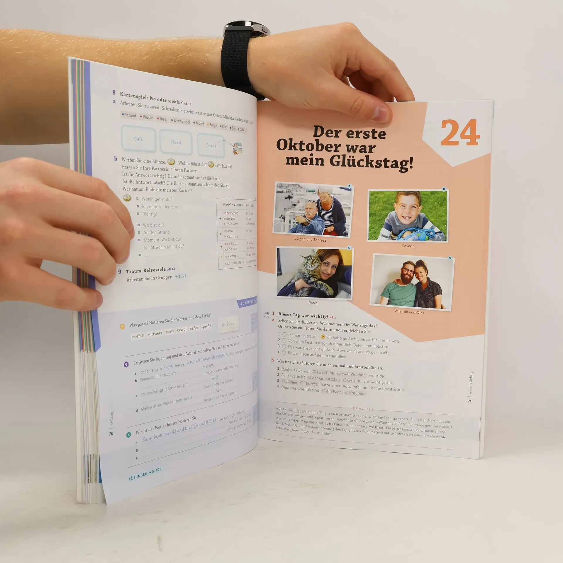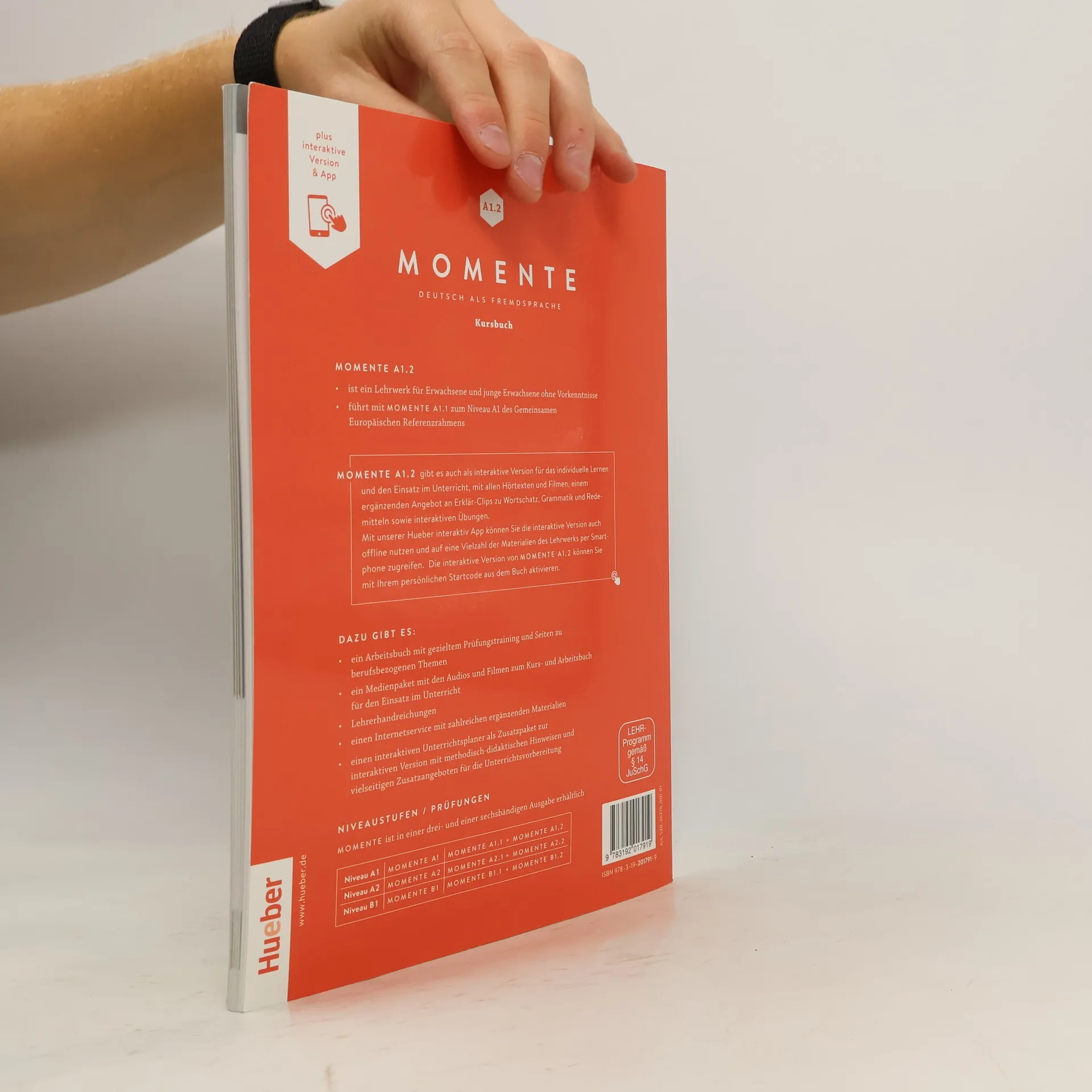 Zielniveau A1.2 Kursbuch plus interaktive Version (über Code im Buch abrufbar) umfasst 4 Module. Jedes Modul besteht aus 3 Lektionen, die Lese- und Hörstrategien trainieren und die produktiven Fertigkeiten Sprechen und Schreiben systematisch aufbauen. Eine abwechslungsreiche Geschichte bildet den thematischen Rahmen jeder Lektion, während Aktionsseiten echte Kommunikation im Kursraum fördern. Das neue Wortfeld wird in einem Bildlexikon in der Fußzeile präsentiert, und die Wörter können in einem Erklär-Clip gehört und nachgesprochen werden, ergänzt durch interaktive Übungen. Ein fakultativer Extra-Film erzählt die Geschichte weiter. Jede Lektion endet mit einem Schnelltest zur Überprüfung des Lernerfolgs. Interaktive Zusatzübungen ermöglichen individuelles Weiterlernen. Ein buntes Magazin beleuchtet die Kursthemen aus neuen Perspektiven und fördert plurikulturelle Kompetenz mit spannenden Themen aus den deutschsprachigen Ländern. Zudem gibt es klare Übersichten über Grammatik und Redemittel. Die interaktive Version enthält alle Hördateien und Filme, interaktive Übungen, Erklär-Clips zu Grammatik, Wortschatz und Kommunikation, sowie binnendifferenzierende Übungen zu den Schnelltests. Eine umfangreiche Toolbar bietet vielseitige Funktionen für den Einsatz am Whiteboard.