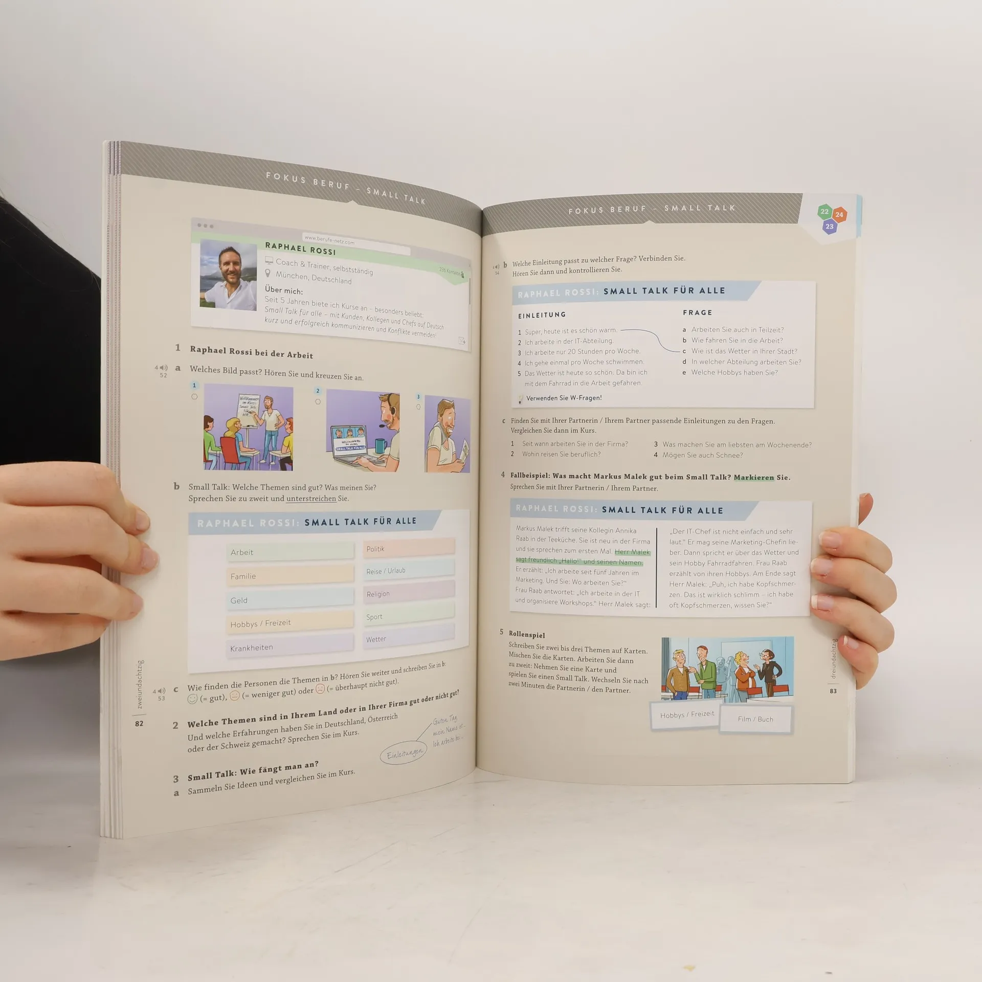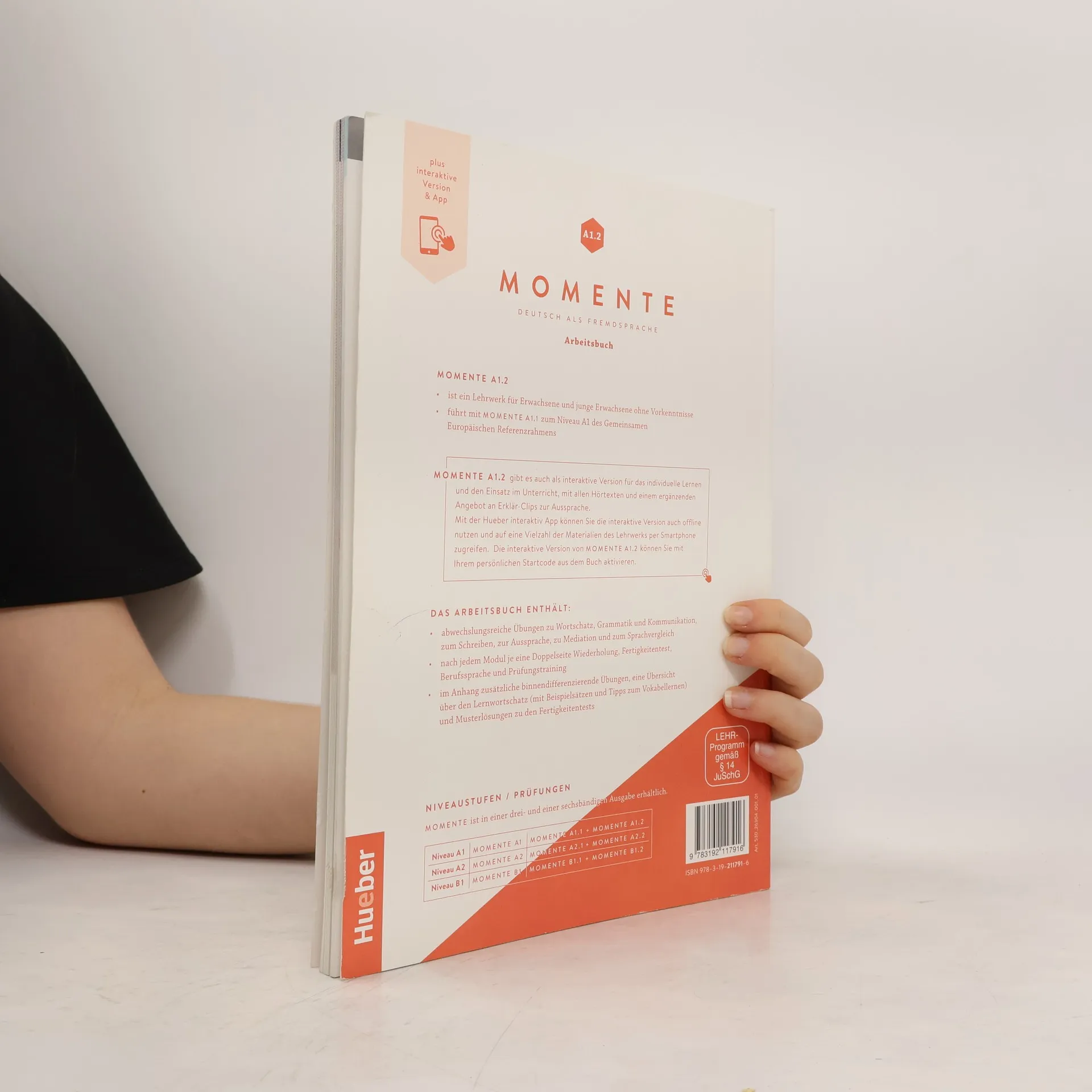 Zielniveau A1.2 Kursbuch plus interaktive Version (über Code im Buch abrufbar) umfasst 4 Module. Jedes Modul besteht aus 3 Lektionen, die Lese- und Hörstrategien trainieren und die produktiven Fertigkeiten Sprechen und Schreiben systematisch aufbauen. Eine abwechslungsreiche Geschichte bildet den thematischen Rahmen jeder Lektion, während Aktionsseiten echte Kommunikation im Kursraum fördern. Das neue Wortfeld wird in einem Bildlexikon in der Fußzeile präsentiert, und die Wörter können in einem Erklär-Clip gehört und nachgesprochen werden, ergänzt durch interaktive Übungen. Ein fakultativer Extra-Film erzählt die Geschichte weiter. Jede Lektion endet mit einem Schnelltest zur Überprüfung des Lernerfolgs. Interaktive Zusatzübungen ermöglichen individuelles Weiterlernen. Ein buntes Magazin beleuchtet die Kursthemen aus neuen Perspektiven und fördert plurikulturelle Kompetenz mit spannenden Themen aus den deutschsprachigen Ländern. Zudem gibt es klare Übersichten über Grammatik und Redemittel. Die interaktive Version enthält alle Hördateien und Filme, interaktive Übungen, Erklär-Clips zu Grammatik, Wortschatz und Kommunikation, sowie binnendifferenzierende Übungen zu den Schnelltests. Eine umfangreiche Toolbar bietet vielseitige Funktionen für den Einsatz am Whiteboard.