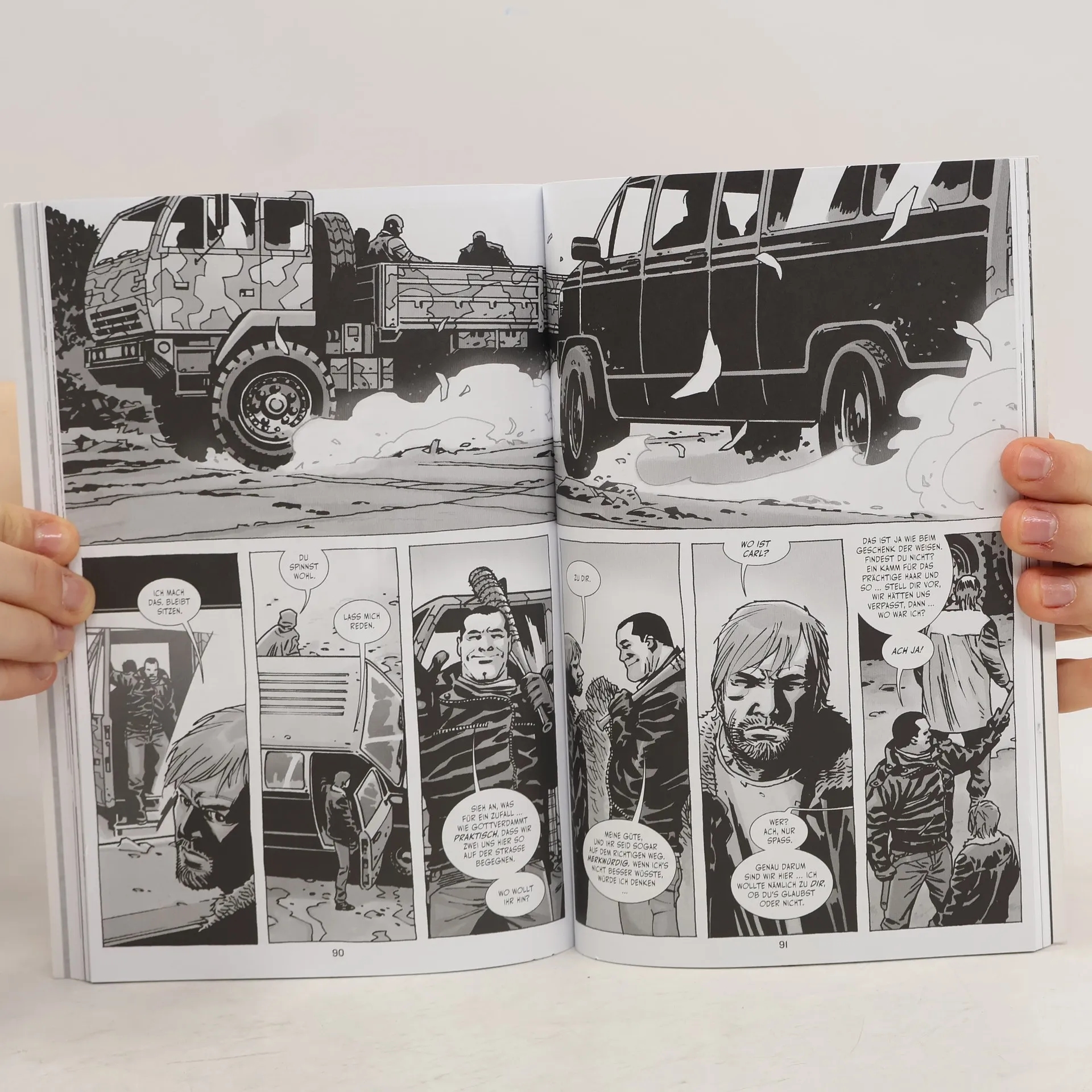 Während die meisten auf eine schnelle Vergeltungsaktion hoffen, sieht Rick den einzigen Ausweg aus der neuen Gefahrenlage, die die Bedrohung durch den skrupellosen Anführer der Erlöser und seine unüberschaubare Armee darstellt, in der Anwendung praktischer Vernunft … sich kleinmachen, sich ducken heißt das Motto der Stunde, das er ausgibt. Damit aber können die wenigsten in Alexandria einverstanden sein, haben sie in der Vergangenheit doch einen völlig anderen Rick Grimes kennengelernt, einen, der sich wehrt und nie aufgibt. Besonders Andrea und Carl sind über das neue Wesen Ricks frustriert … Carl sogar so sehr, dass er beschließt sich ein Maschinengewehr zu schnappen und selbst auf die Jagd nach Negan zu gehen … mit irreparablen Konsequenzen!Unterdessen heftet sich Jesus im Geheimen an die Fersen des wieder freigelassenen Erlösers Dwight, um alles über Negan und seine Basis herauszufinden, zieht sich Michonne immer weiter zurück und beginnen der Tüftler Eugene, Monroes Sohn Spencer und andere eigene Pläne zu schmieden. Alexandria steht kurz vor der Zusammenbruch … nie war die Gemeinschaft so zerbrechlich wie nach dem brutalen Tod Glenns und dem Umzug Maggies und Sophias auf die Anhöhe!