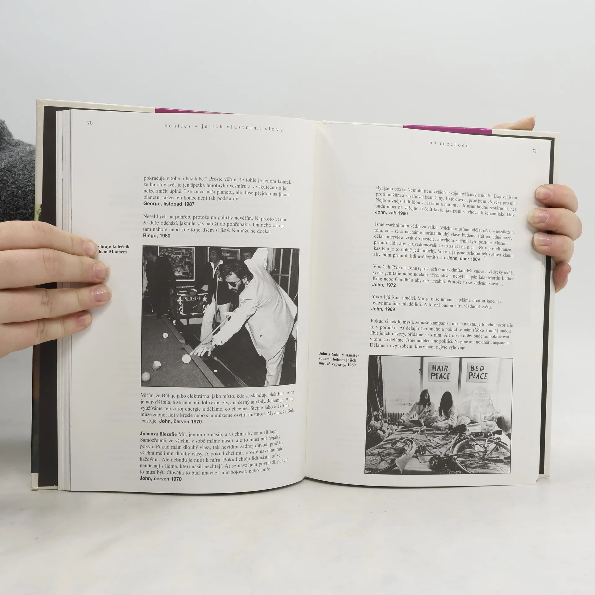 Autentické výpovědi členů skupiny Beatles, sebrané z různých zdrojů v letech 1970-1990 a sestavené do jednotících tematických celků. Jejich soubor vytváří atraktivní obraz vztahů a názorů všech čtyř legendárních osobností po jejich uměleckém rozchodu.