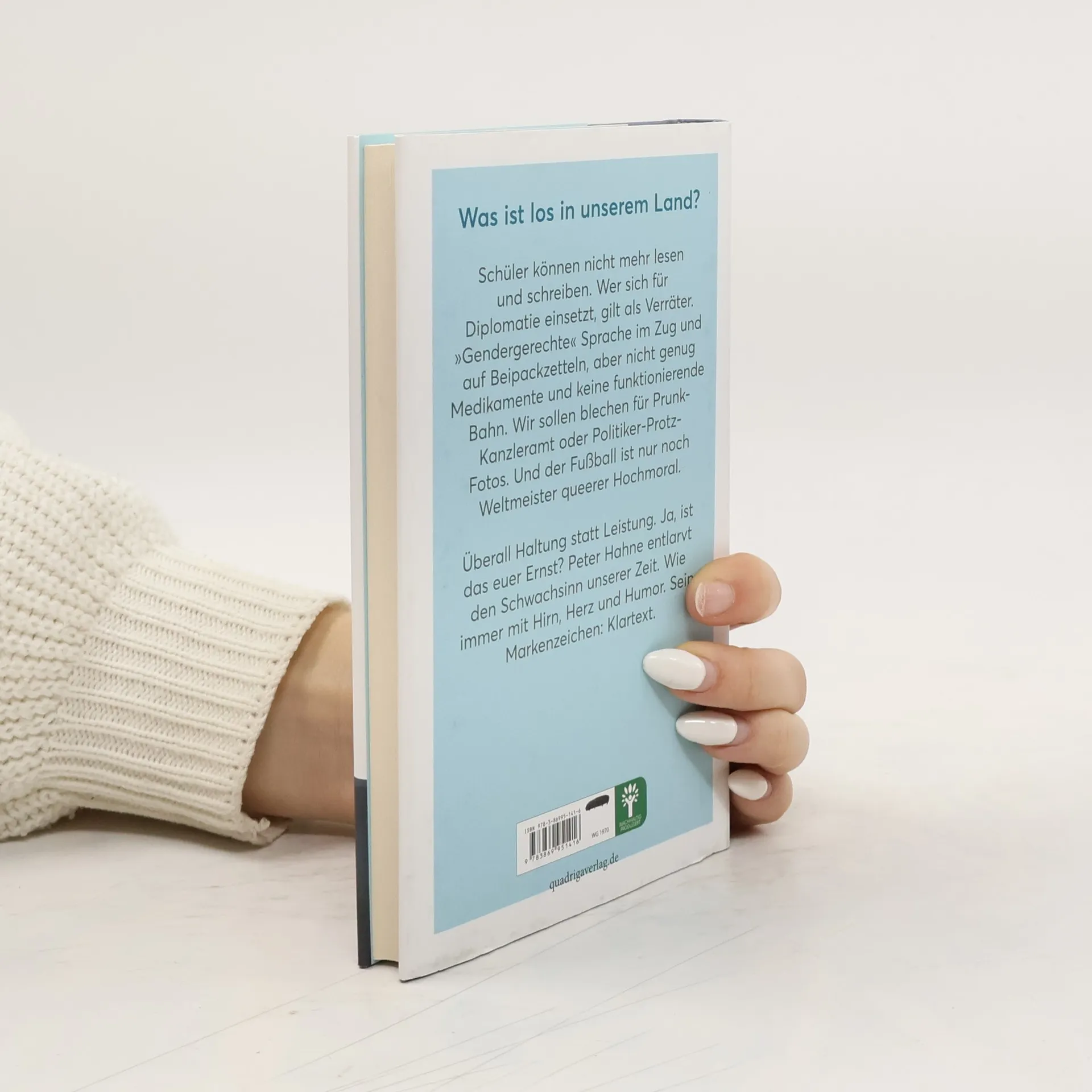 Was ist los in unserem Land? Schüler können nicht mehr lesen und schreiben. Wer sich für Diplomatie einsetzt, gilt als Verräter. »Gendergerechte« Sprache im Zug und auf Beipackzetteln, aber nicht genug Medikamente und keine funktionierende Bahn. Wir sollen blechen für Prunk-Kanzleramt oder Politiker-Protz-Fotos. »Corona« bleibt unaufgeklärt. Warnhinweise für »Otto« oder »Harald Schmidt«, als wäre das Volk blöd. Und der Fußball ist nur noch Weltmeister queerer Hochmoral. Überall Haltung statt Leistung. Ja, ist das euer Ernst? Peter Hahne entlarvt den Schwachsinn. Wie immer mit Hirn, Herz und Humor. Sein Markenzeichen: Klartext.