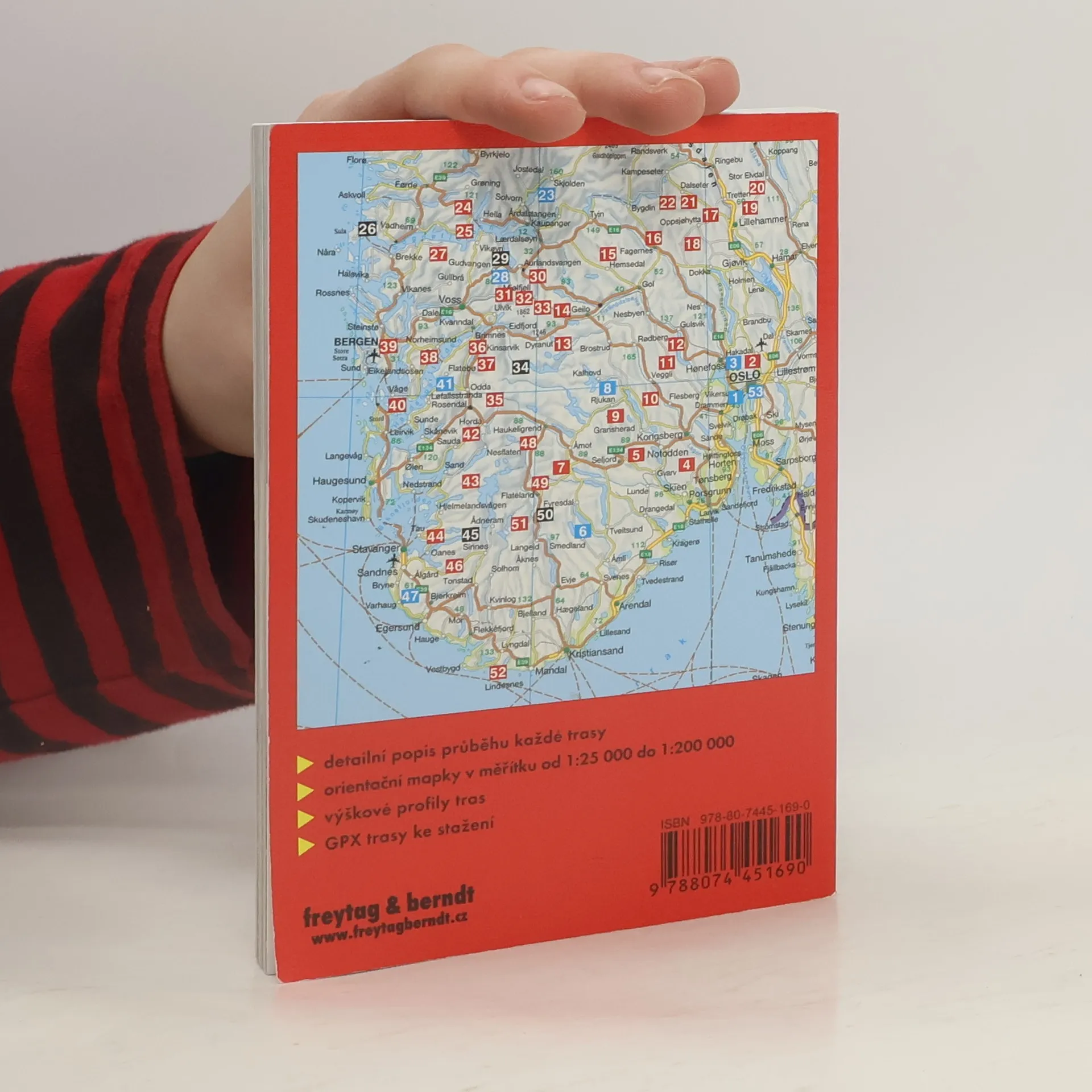 Průvodce představuje 50 vybraných turistických tras v jižním Norsku mezi Oslem, Lomem, Bergenem a Kristiansandem. Popis každé trasy nabízí všechny důležité informace o charakteru cesty, časové náročnosti a zajímavostech, které lze spatřit, nechybí ani mapka. Publikace rovněž obsahuje všeobecný přehled o pěší turistice v Norsku, místní přírodě, přitažlivých horských i jiných oblastech. Čtenář zde nalezne také důležité kontakty, slovníček geografických pojmů a rejstřík. Atmosféru dokresluje bohatý obrazový materiál.