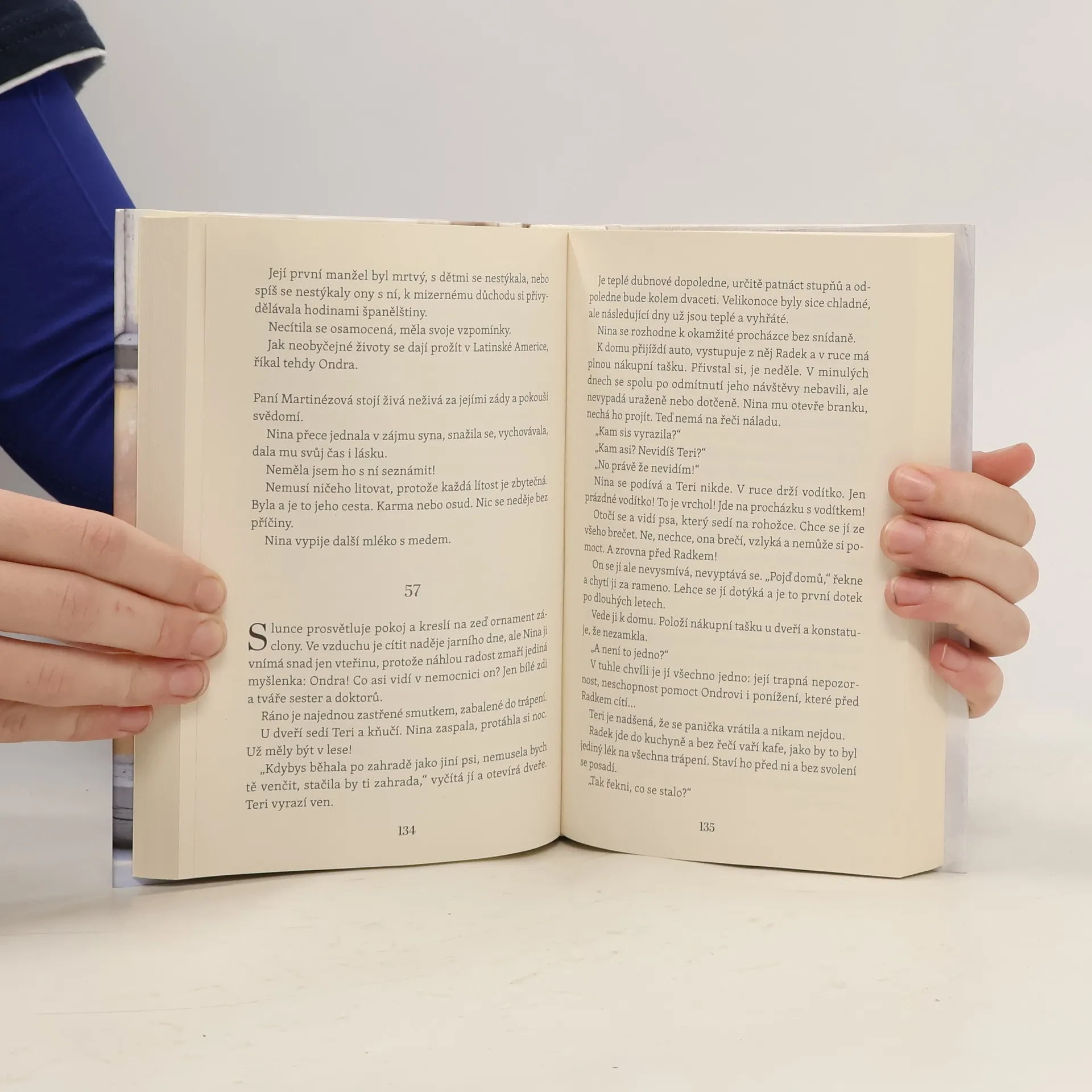 Příběh ženy, která navzdory vážným potížím neztrácí naději a víru v život, a nakonec dospěje k pochopení, odpuštění a toleranci. Vdova a čerstvá důchodkyně Nina, která miluje literaturu a svého malého psa, žije poklidný život v domě po rodičích s bratrem Radkem, jemuž odmítá porozumět. Je matkou jediného syna, jenž už před lety odešel do Latinské Ameriky. S ním, jeho ženou a dcerou se vídá pouze přes Skype. Život jí změní přistěhování nové rodiny do ulice. Sbližuje se s jejich dcerou Gábinou, ale neblaze na ni působí snaha Gábinina otce, majitele realitní společnosti, o koupi jejich domu. Nesoulad s bratrem ještě umocňuje jeho souhlas s prodejem. Vážná nehoda syna spolu s obavou o vlastní zdraví vrací Ninu o mnoho let zpátky k traumatizující situaci, s níž se dodnes nevyrovnala. Nina se však musí poprat s novým problémem, který je závažnější než bolavá nemožnost dožít v domě po předcích... Nakladatelská anotace.