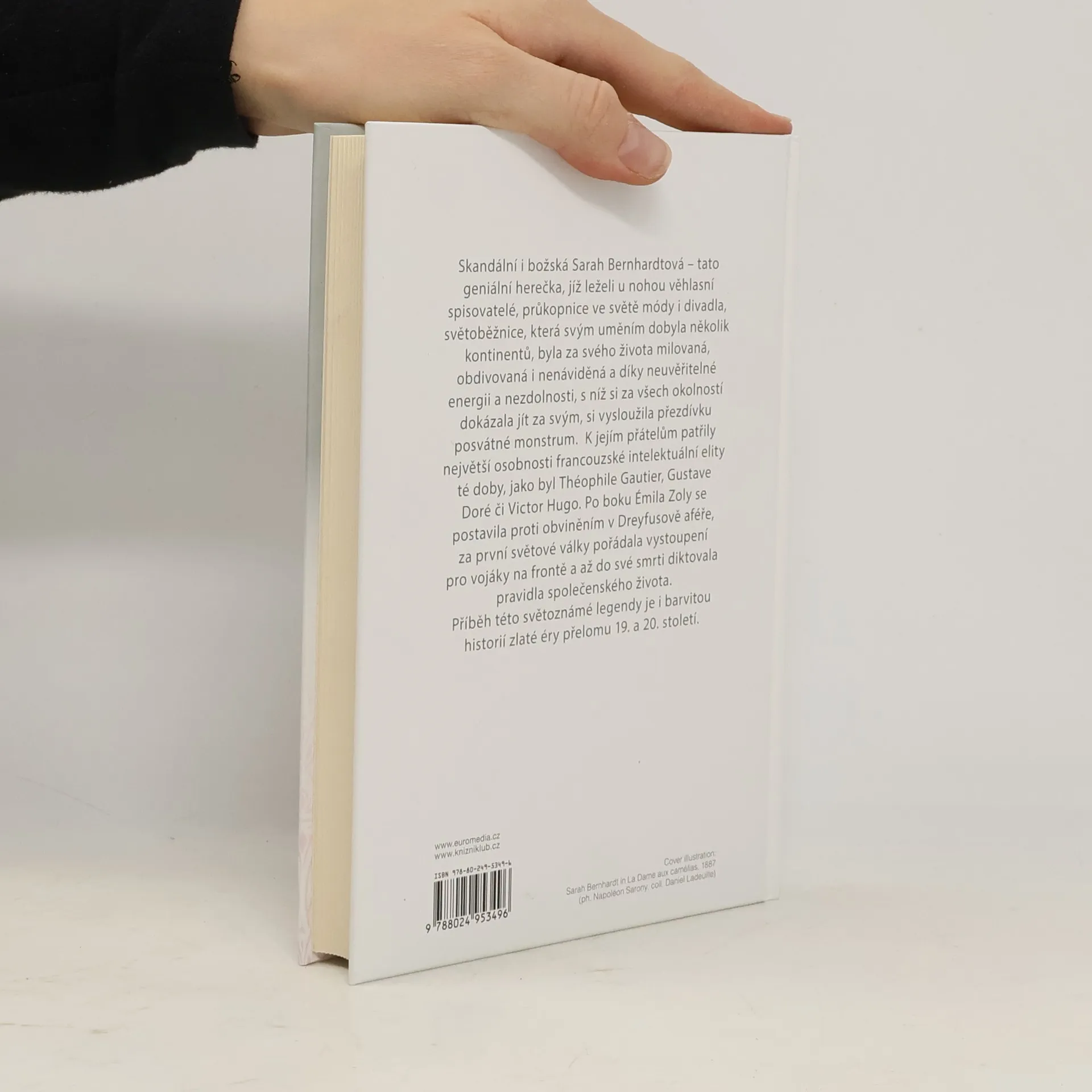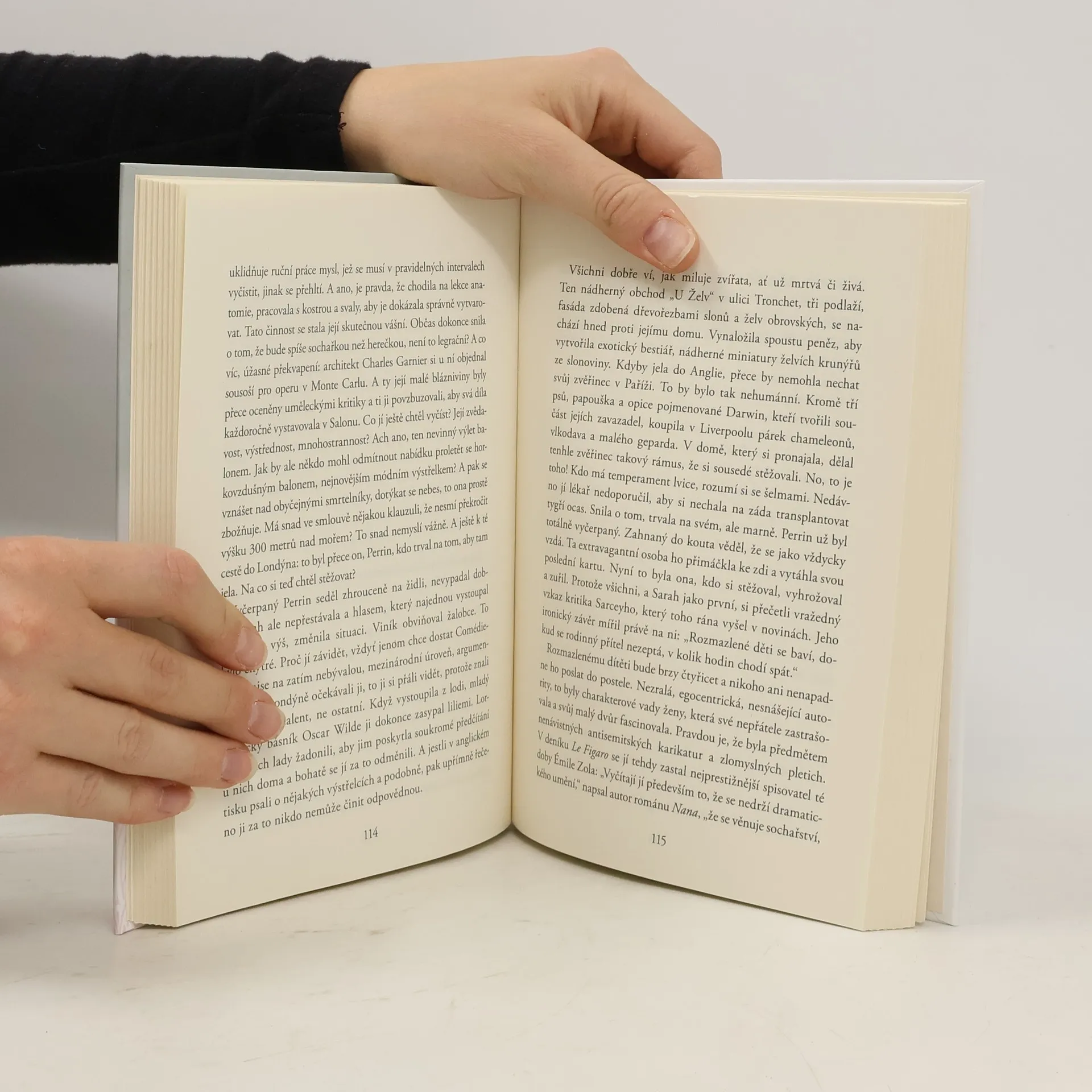Biografický román sleduje závratnou kariéru a bouřlivý osobní život proslulé herečky Sarah Bernhardtové. Skandální i božská Sarah Bernhardtová - tato geniální herečka, jíž leželi u nohou věhlasní spisovatelé, průkopnice ve světě módy i divadla, světoběžnice, která svým uměním dobyla několik kontinentů, byla za svého života milovaná, obdivovaná i nenáviděná a díky neuvěřitelné energii a nezdolnosti, s níž si za všech okolností dokázala jít za svým, si vysloužila přezdívku posvátné monstrum. K jejím přátelům patřily největší osobnosti francouzské intelektuální elity té doby, jako byl Théophile Gautier, Gustave Doré či Victor Hugo. Po boku Émila Zoly se postavila proti obviněním v Dreyfusově aféře, za první světové války pořádala vystoupení pro vojáky na frontě a až do své smrti diktovala pravidla společenského života. Příběh této světoznámé legendy je i barvitou historií zlaté éry přelomu 19. a 20. století. Nakladatelská anotace.