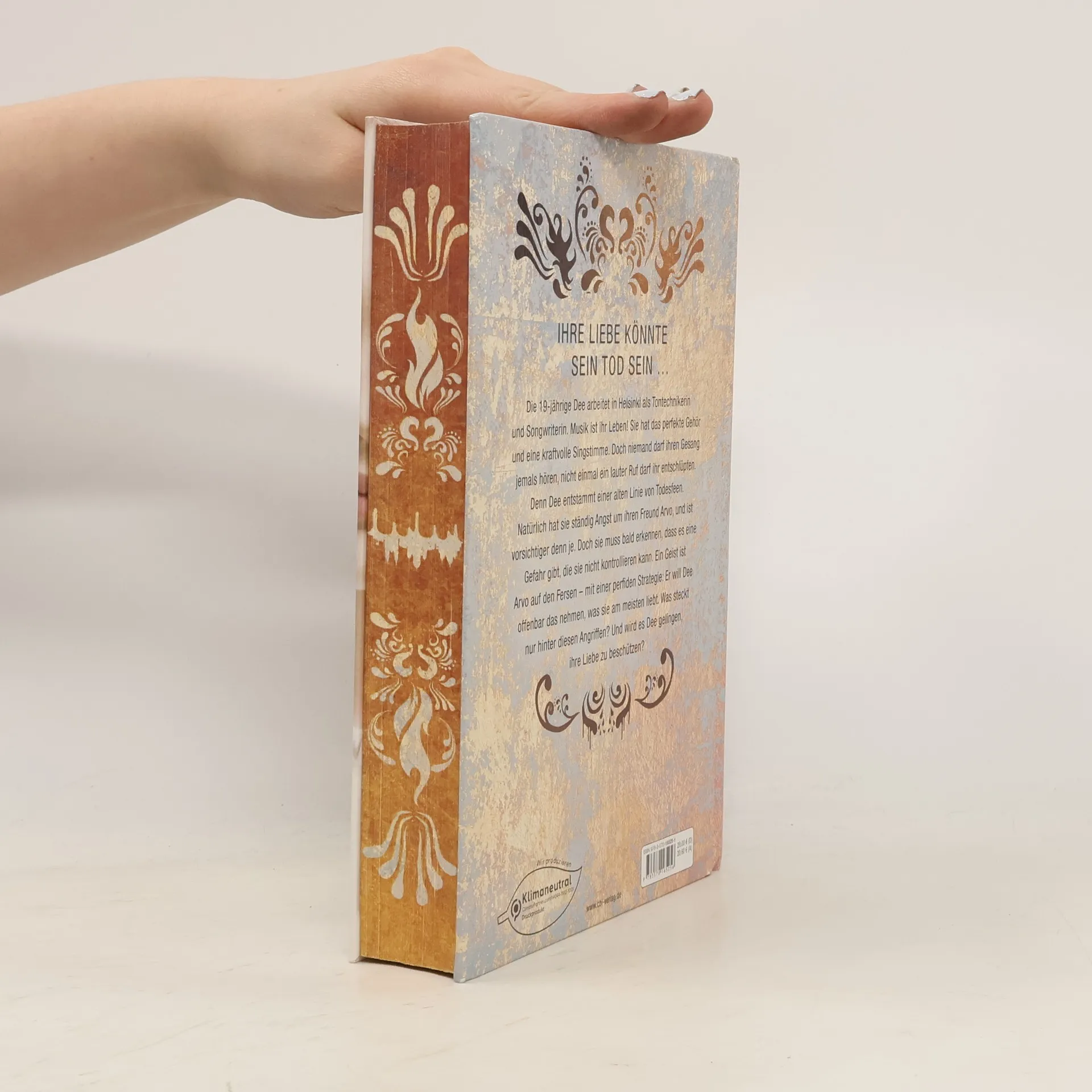 Ihre Liebe könnte sein Tod sein ... Die 19-jährige Dee arbeitet in Helsinki als Tontechnikerin und Songwriterin. Musik ist ihr Leben! Sie hat das perfekte Gehör und eine kraftvolle Singstimme. Doch niemand darf ihren Gesang jemals hören, nicht einmal ein lauter Ruf darf ihr entschlüpfen. Denn Dee entstammt einer alten Linie von Todesfeen. Natürlich hat sie ständig Angst um ihren Freund Arvo, und ist vorsichtiger denn je. Doch sie muss bald erkennen, dass es eine Gefahr gibt, die sie nicht kontrollieren kann. Ein Geist ist Arvo auf den Fersen – mit einer perfiden Strategie: Er will ihr offenbar das nehmen, was sie am meisten liebt. Was steckt nur hinter diesen Angriffen? Und wird es Dee gelingen, ihre Liebe zu beschützen? Inspiriert von keltischen Mythen, hochspannend und unwiderstehlich romantisch – meisterhafte Urban Fantasy von Seraph-Preisträgerin Nina Blazon.