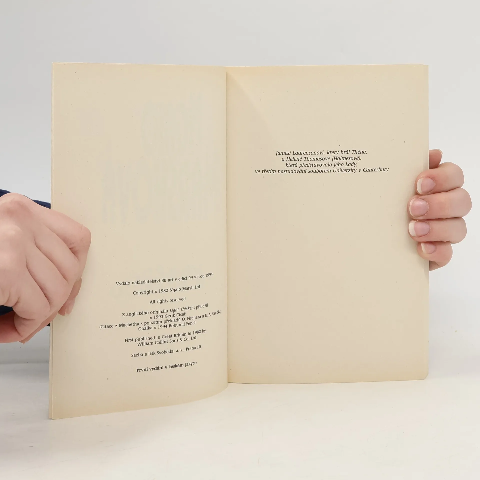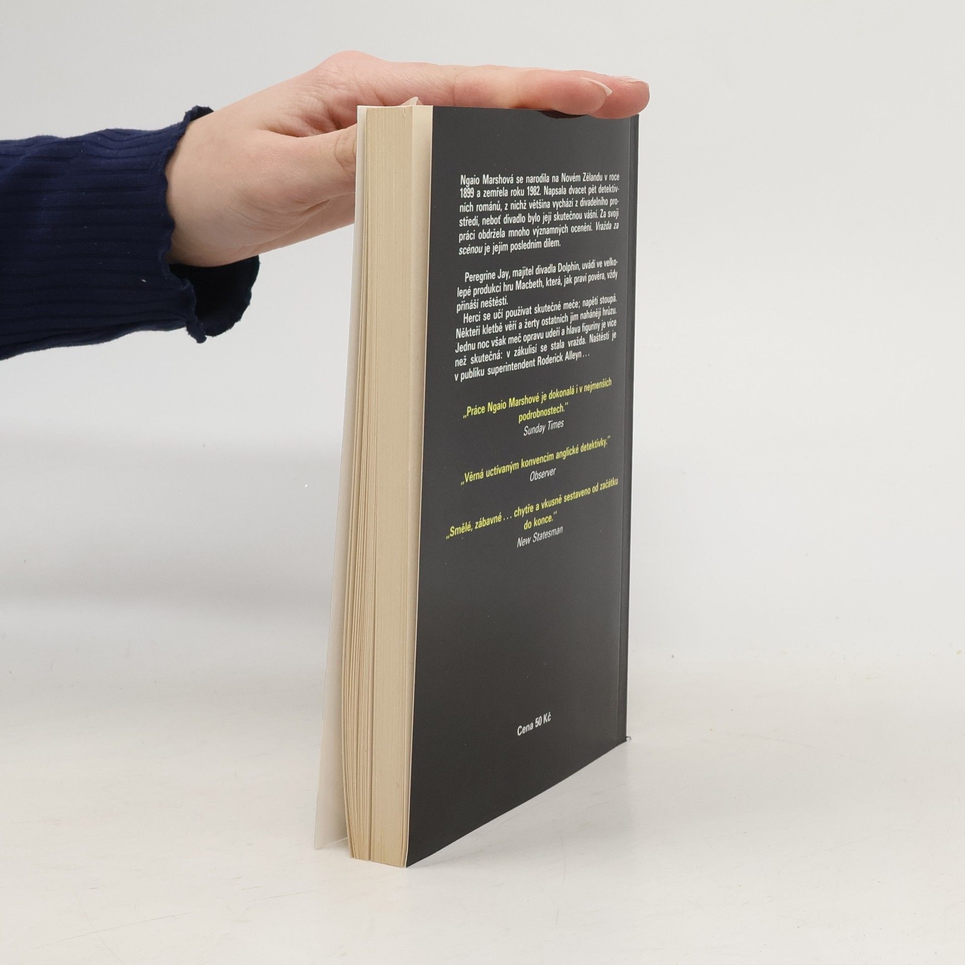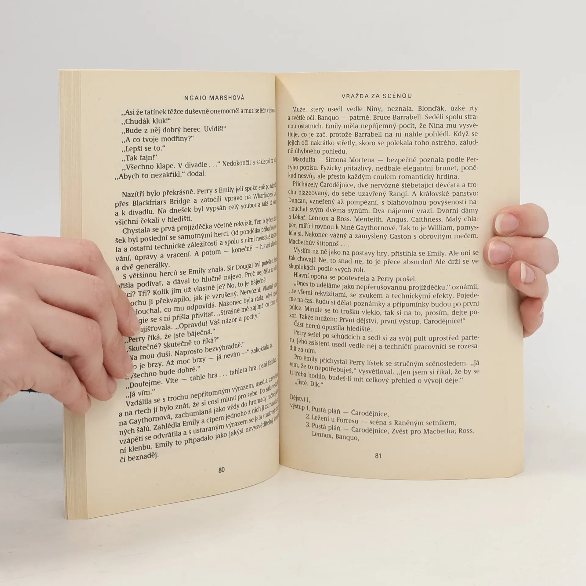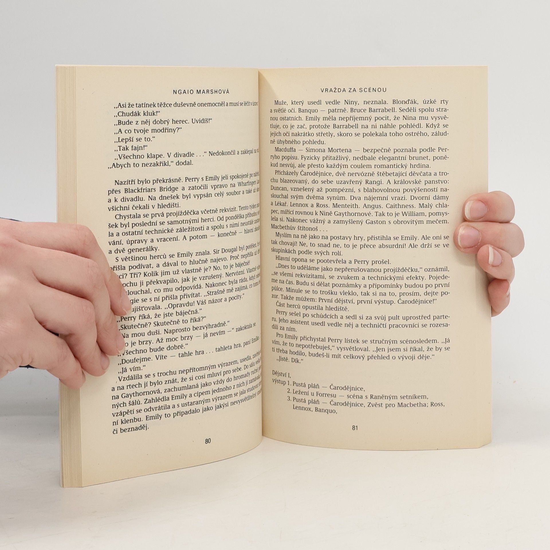Detektivní román z divadelního prostředí renomované londýnské scény. Když majitel divadla Dolphin Peregrine Jay uvádí ve velkolepé produkci hru Macbeth, nic nedbá na divadelní pověru, že hra vždy přinese neštěstí a smrt. Kletba se však vyplní vraždou v zákulisí. Naštěstí je v publikusuperintendent Roderick Alleyn.