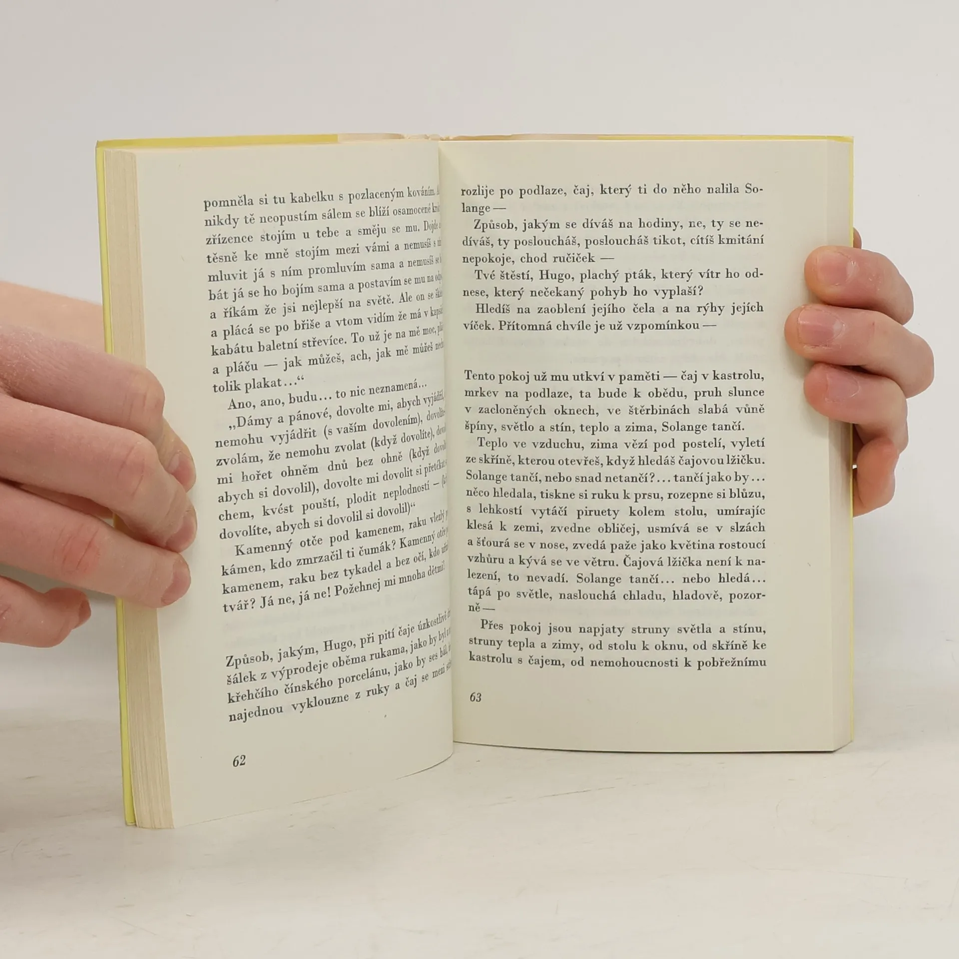Tři novely (či mikroromány): Solange je lyrizovaný příběh z padesátých let 20. století o hrdinčině marné touze uniknout monotónnosti každodenního života a odpoutání se od neuspokojivé role, přiřčené ji společností. Mistr Ma je porovnání výroků fiktivního čínského filozofa s komentáři jeho ženy a jednoho z jeho žáků. Sám ve dvou je groteskní hyperbola jejíž hrdina nebo hrdinové jsou ve své omezenosti a snaze dosáhnout jednorozměrné přehlednosti společenskými protinožci nešťastné Solange.
