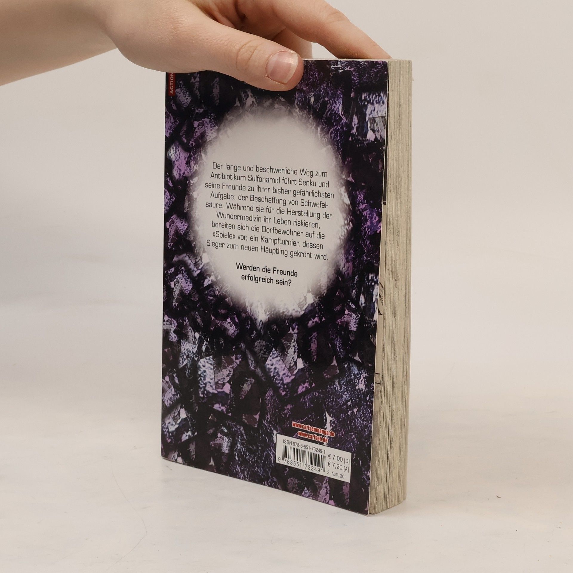 DR. STONE ist einer der beliebtesten Manga in Japan und begeistert mittlerweile auch Animefans auf der ganzen Welt! Ein Augenblick, und die Menschheit erstarrt auf mysteriöse Weise zu Stein. Als die beiden Highschool-Schüler Senku und Taiju mehr als dreitausend Jahre später erwachen, beschließen sie, die menschliche Zivilisation im Alleingang neu aufzubauen! Ein beispielloses Science-Fiction-Abenteuer beginnt! Das erwartet dich in diesem Band: Der lange und beschwerliche Weg zum Antibiotikum Sulfonamid führt Senku und seine Freunde zu ihrer bisher gefährlichsten Aufgabe: der Beschaffung von Schwefelsäure. Während sie für die Herstellung der Wundermedizin ihr Leben riskieren, bereiten sich die Dorfbewohner auf die »Spiele« vor, ein Kampfturnier, dessen Sieger zum neuen Häuptling gekrönt wird. Abenteuer, Action, Witz und Wissenschaft vereinen sich in diesem Manga für Jungs, Mädchen und alle Geschlechter. Und das Beste: Physik und Chemie sind hier ein Riesenspaß! Weitere Informationen: - Abgeschlossen in 26 Bänden - Top Titel der japanischen WEEKLY SHONEN JUMP - Perfekt für alle Mangafans ab 14 Jahren