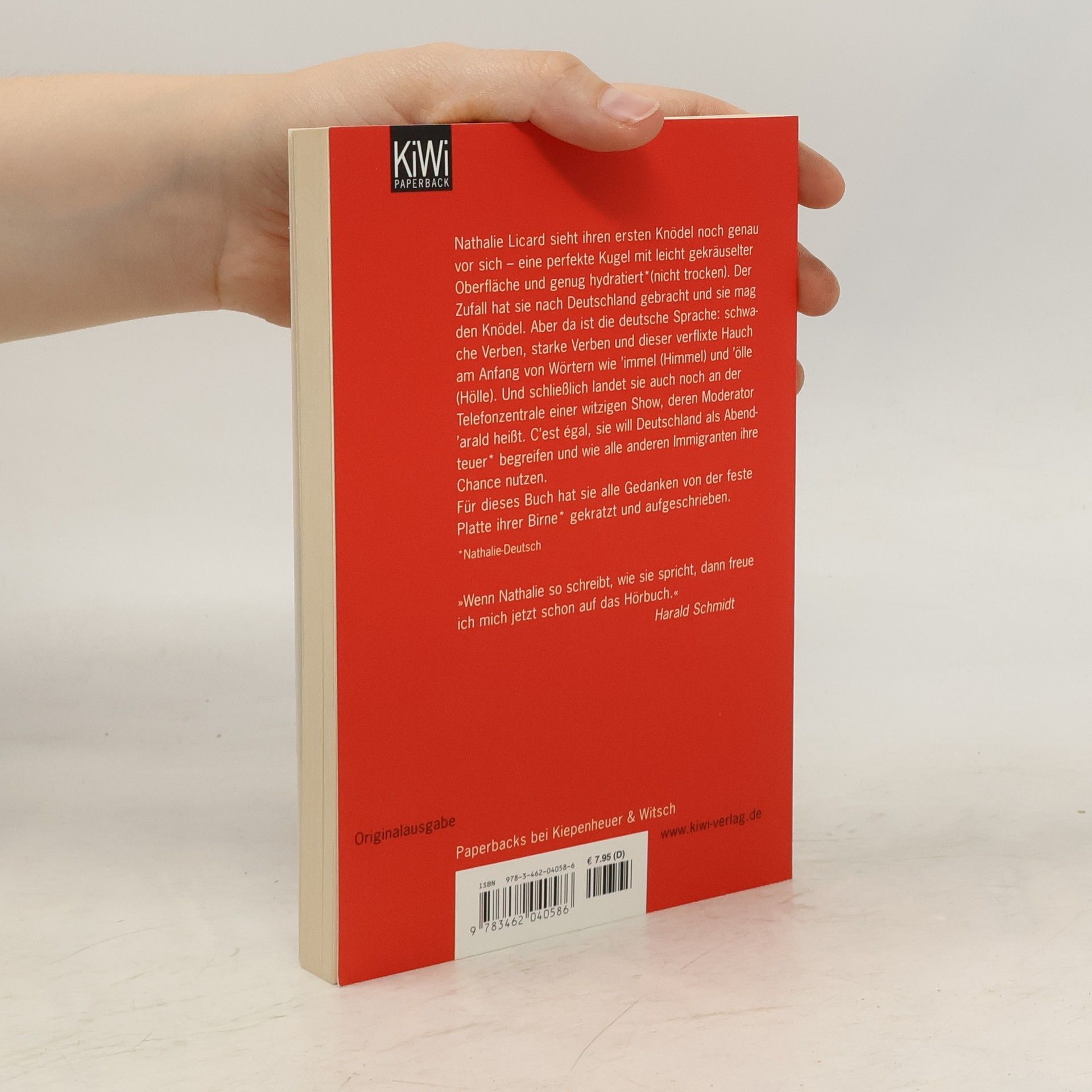 »Wenn Nathalie so schreibt wie sie spricht, dann freue ich mich jetzt schon auf das Hörbuch.« Harald SchmidtSie spricht mit diesem wunderbaren französischen Akzent. Eines ihrer deutschen Lieblingswörter ist Schlompäh [Lautschrift: Schlampe]. Sie ist wirklich charmant und wirklich sehr ehrlich. Nathalie Licard ist wirklich so. Und eine waschechte Französin. Aber wie ist Deutschland? Darüber hat Nathalie Licard lange nachgedacht und genau hingeschaut, ja, wirklich. Nathalie Licard kam nach Deutschland völlig ungeplant und unvorbereitet. Die ersten Tage waren eine Katastrophe: keine 20 Wörter Deutsch. Sie fühlte sich wie gekochtes Gemüse. Nathalie Licard war 30, verliebt und bekam einen Job als Mädchen für alles bei einer Late-Night-Show. Dort wurde sie weiter gebraucht: als Telefonistin, Ansagerin, Verkörperung des Französischen, Sidekick, Reporterin für Spezialeinsätze und Sängerin, die nicht singt. Sie lernte Deutsch, lernte, dass es Humor gibt und witzige Deutsche (sie hatte ja beste Bedingungen bei der Harald-Schmidt-Show), aber sie widersetzte sich der Grammatik und den Essgewohnheiten. Nathalie ist eine Französin und wird es wohl ihr Leben lang bleiben. Aber nach all den Jahren Deutschland ist so viel Stoff zusammengekommen, dass es für drei dicke Schinken reichen würde. Hier beschränkt sie sich wirklich auf das Allernötigste. Für das mangelhafte Deutsch möchte sie sich jetzt schon entschuldigen.