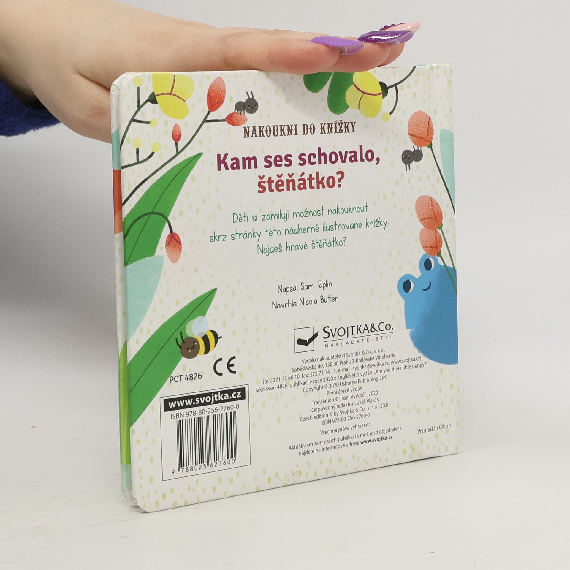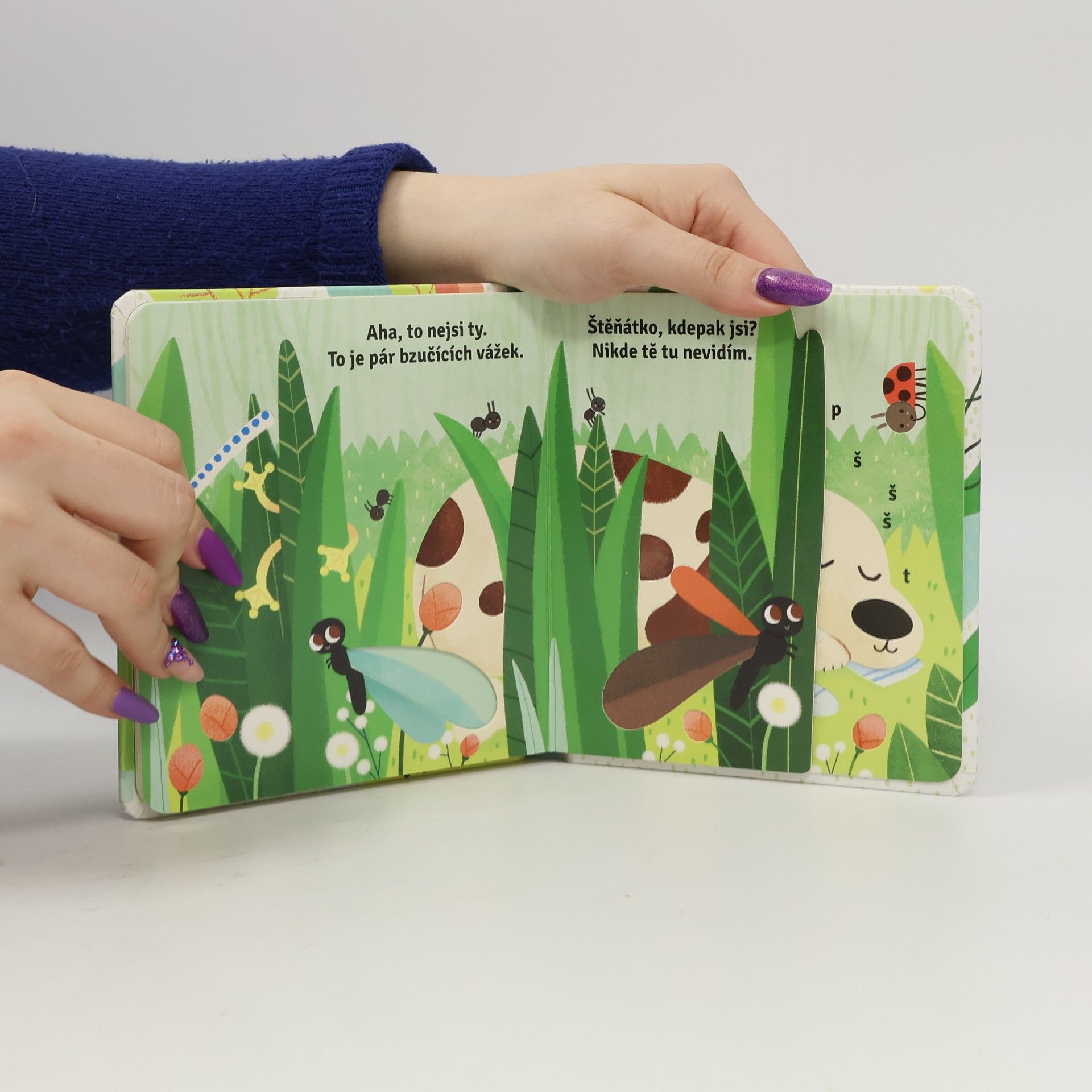 Kniha pro nejmenší děti, která jim jistě udělá radost. Užijte si společné chvíle při listování knihou a hledejte roztomilé štěňátko. Cáká se v bublinách? Odkud vykukuje jeho plandavé ouško? Kam se schovalo tentokrát? Děti jistě potěší, že mohou nakukovat skrz výřezy do dalších stránek. Šikovně umístěné výřezy navíc dávají obrázkům nový rozměr možná není vše na obrázku takové, jak se to na první pohled zdá. Kniha je vytvořena z pevného materiálu, který vydrží i neopatrné zacházení malých nezbedníků. Tak hurá do objevování!