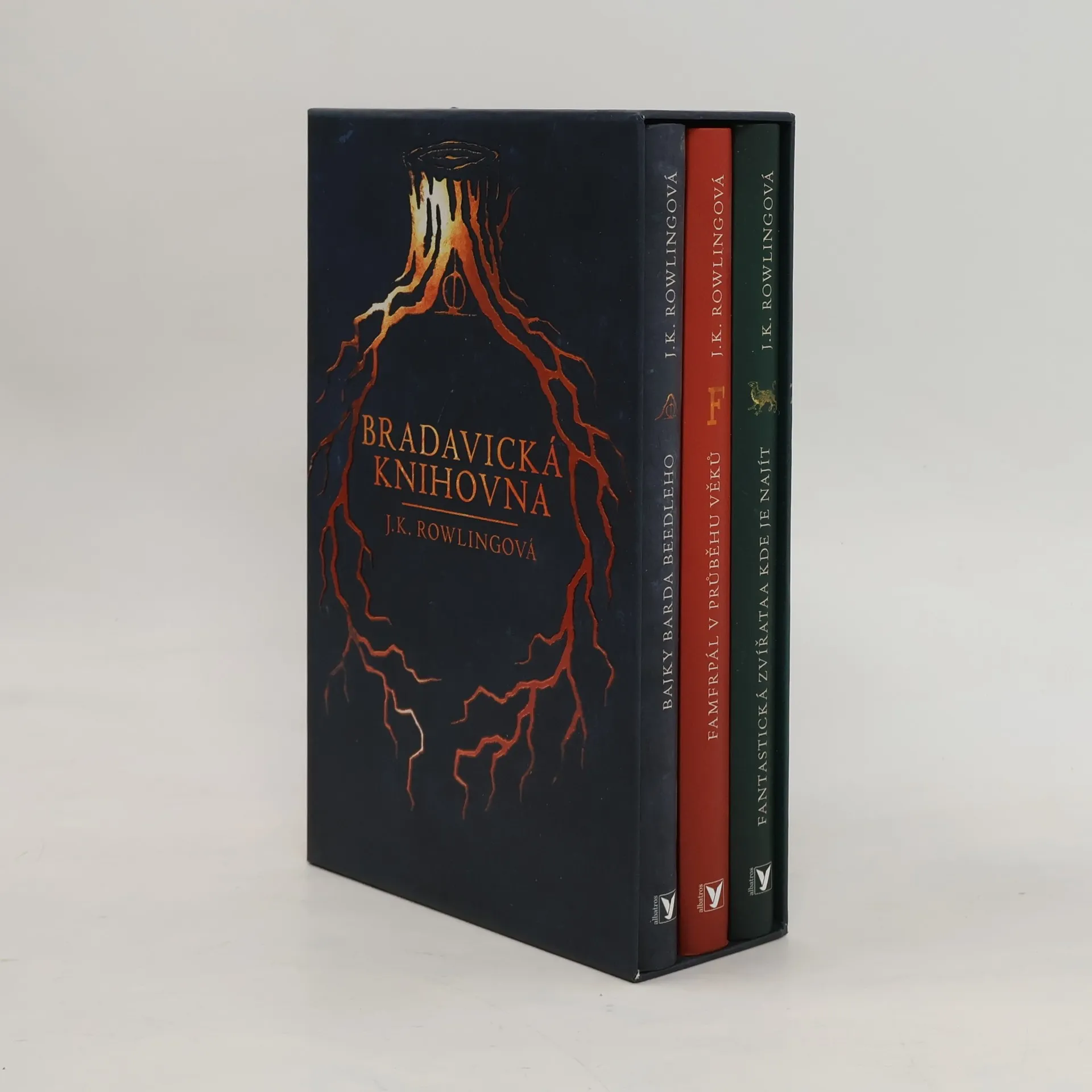 Všechny tři legendární knihy z Bradavické školní knihovny v jednom boxu! Fantastická zvířata a kde je najít, Bajky Barda Beedleho i Famfrpál v průběhu věků se teď budou ve vaší knihovničce vyjímat ještě lépe. Ideální dárek pro všechny kouzelníky i mudly!