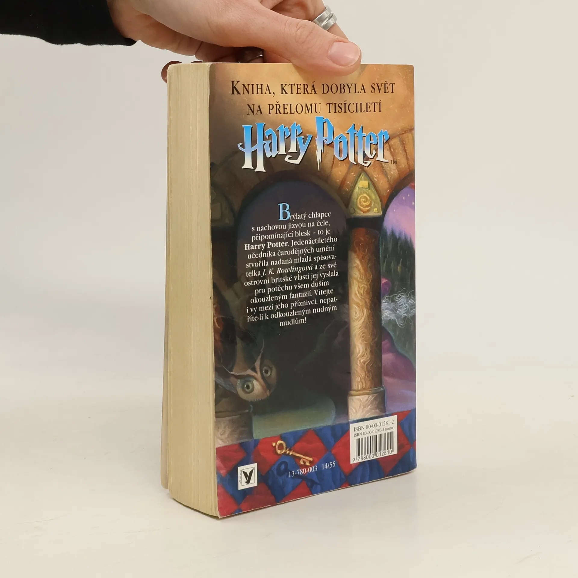 Harry Potter si myslí, že je obyčejný kluk. Když byl ještě malý, zemřeli mu rodiče a on zná jen těžký život u strýce, tety a jejich tlustého a rozmazleného synka Dudleyho. Vše se ale změní ve chvíli, kdy mu poštovní sova přinese záhadný dopis – pozvánku ke studiu na Škole čar a kouzel v Bradavicích, a obr Hagrid mu prozradí, že je kouzelník! Harry neváhá ani vteřinu a odjíždí do Bradavic, kde potká své nejlepší kamarády – Rona Weasleyho a Hermionu Grangerovou, naučí se ovládat své kouzelnické schopnosti, stane se členem školního týmu famfrpálu – populárního kouzelnického sportu na košťatech, a především svede bitvu s Voldemortem, Pánem zla. Toto vydání je prodávano ve sbírce 1.–4. dílu.
