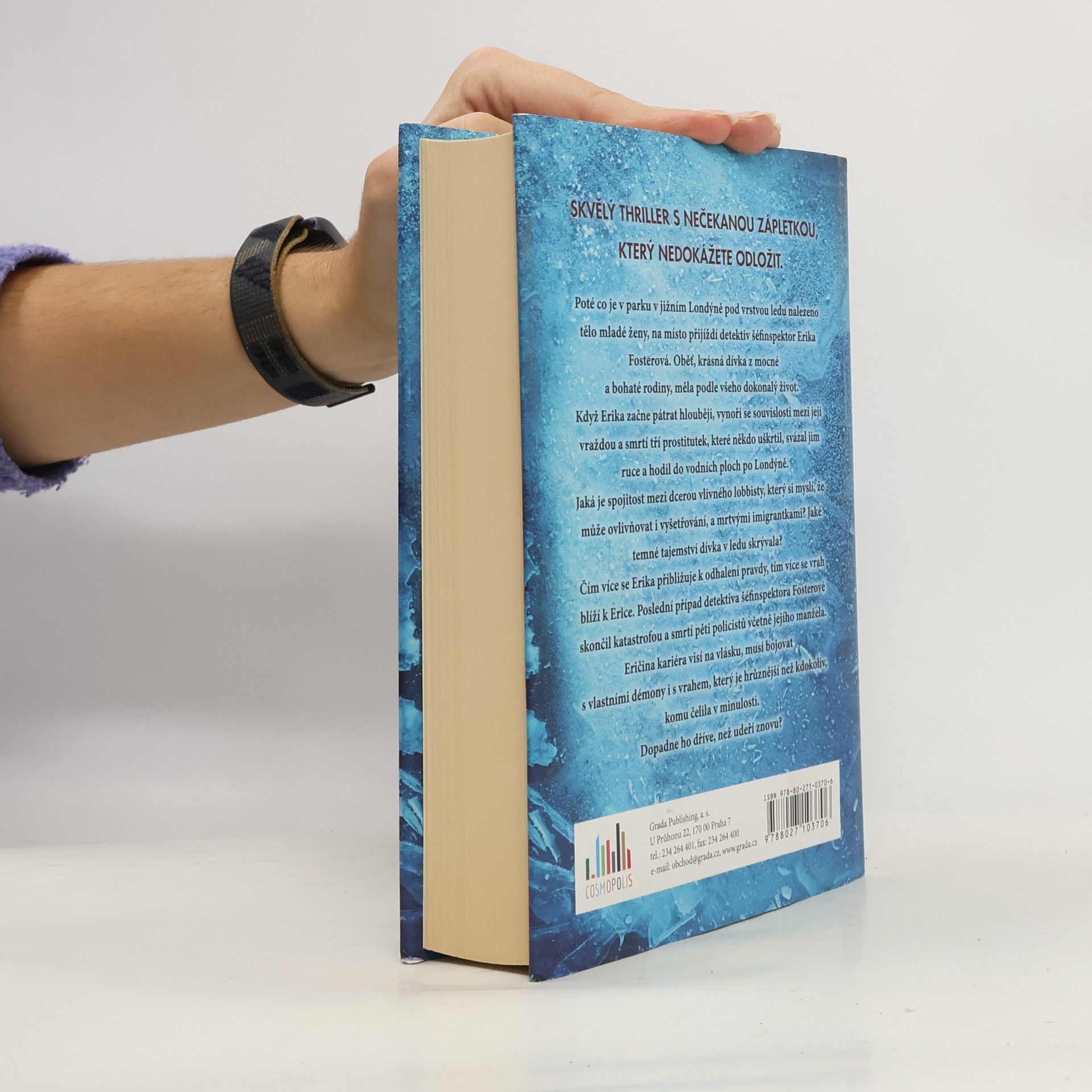 Poté co je v parku v jižním Londýně pod vrstvou ledu nalezeno tělo mladé ženy, na místo přijíždí detektiv šéfinspektor Erika Fosterová. Oběť, krásná dívka z mocné a bohaté rodiny, měla podle všeho dokonalý život. Když Erika začne pátrat hlouběji, vynoří se souvislosti mezi její vraždou a smrtí tří prostitutek, které někdo uškrtil, svázal jim ruce a hodil do vodních ploch po Londýně. Jaká je spojitost mezi dcerou vlivného lobbisty, který si myslí, že může ovlivňovat i vyšetřování, a mrtvými imigrantkami? Jaké temné tajemství dívka v ledu skrývala? Čím více se Erika přibližuje k odhalení pravdy, tím více se vrah blíží k Erice. Poslední případ detektiva šéfinspektora Fosterové skončil katastrofou a smrtí pěti policistů včetně jejího manžela. Eričina kariéra visí na vlásku, musí bojovat s vlastními démony i s vrahem, který je hrůznější než kdokoliv, komu čelila v minulosti. Dopadne ho dříve, než udeří znovu?