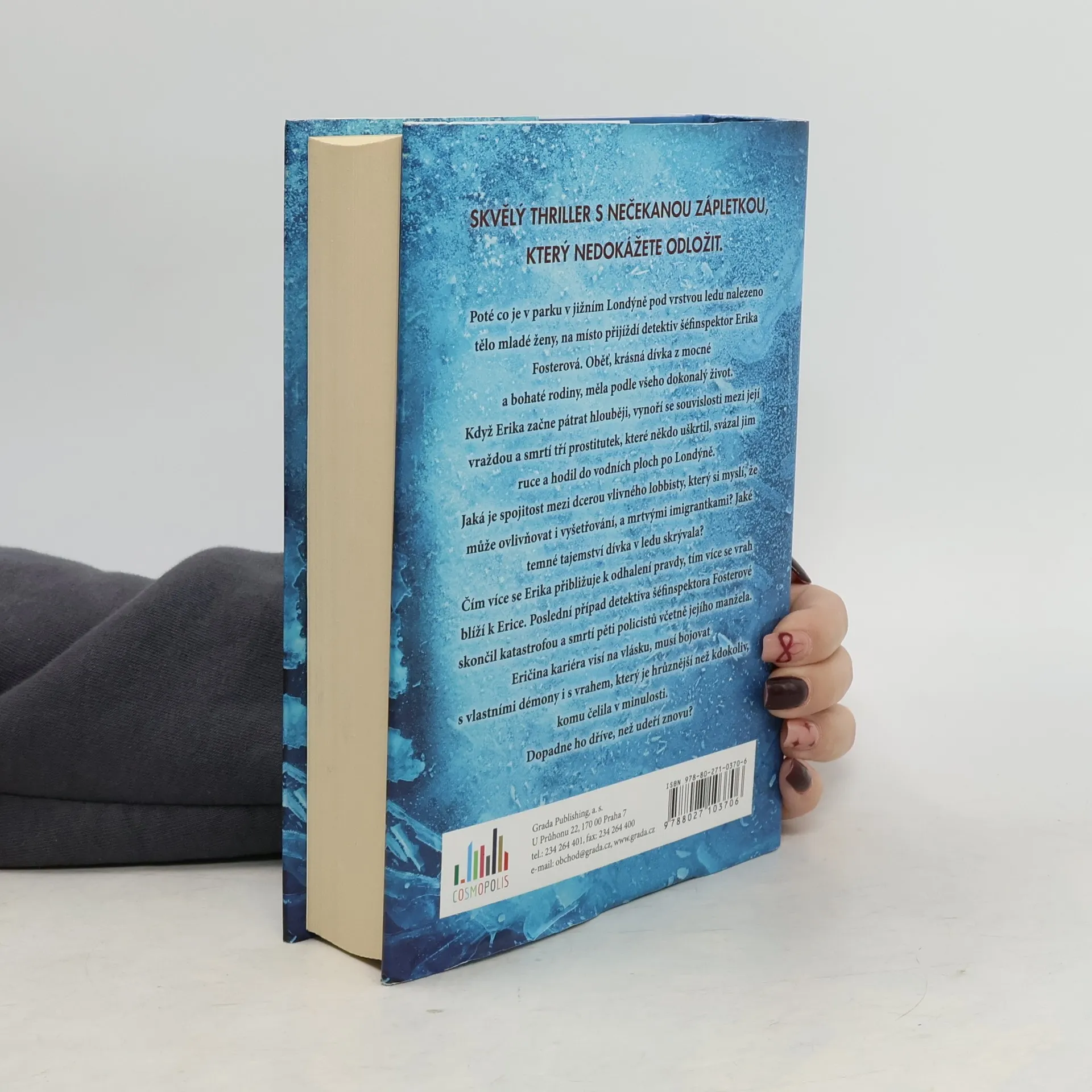 Poté co je v parku v jižním Londýně pod vrstvou ledu nalezeno tělo mladé ženy, na místo přijíždí detektiv šéfinspektor Erika Fosterová. Oběť, krásná dívka z mocné a bohaté rodiny, měla podle všeho dokonalý život. Když Erika začne pátrat hlouběji, vynoří se souvislosti mezi její vraždou a smrtí tří prostitutek, které někdo uškrtil, svázal jim ruce a hodil do vodních ploch po Londýně. Jaká je spojitost mezi dcerou vlivného lobbisty, který si myslí, že může ovlivňovat i vyšetřování, a mrtvými imigrantkami? Jaké temné tajemství dívka v ledu skrývala? Čím více se Erika přibližuje k odhalení pravdy, tím více se vrah blíží k Erice. Poslední případ detektiva šéfinspektora Fosterové skončil katastrofou a smrtí pěti policistů včetně jejího manžela. Eričina kariéra visí na vlásku, musí bojovat s vlastními démony i s vrahem, který je hrůznější než kdokoliv, komu čelila v minulosti. Dopadne ho dříve, než udeří znovu?