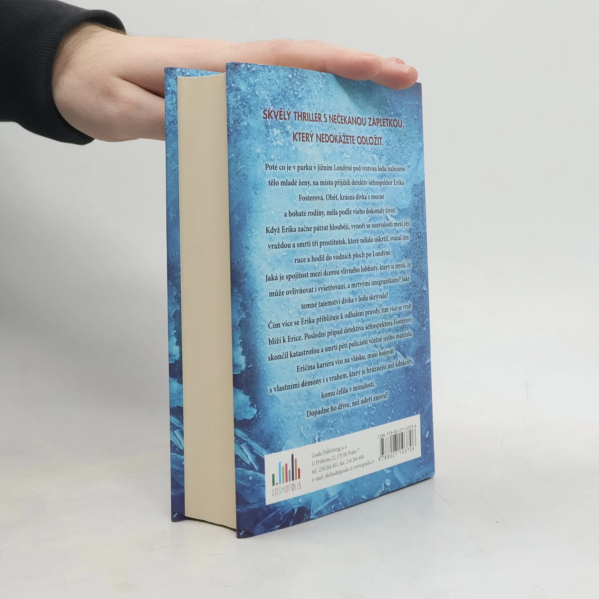 Poté co je v parku v jižním Londýně pod vrstvou ledu nalezeno tělo mladé ženy, na místo přijíždí detektiv šéfinspektor Erika Fosterová. Oběť, krásná dívka z mocné a bohaté rodiny, měla podle všeho dokonalý život. Když Erika začne pátrat hlouběji, vynoří se souvislosti mezi její vraždou a smrtí tří prostitutek, které někdo uškrtil, svázal jim ruce a hodil do vodních ploch po Londýně. Jaká je spojitost mezi dcerou vlivného lobbisty, který si myslí, že může ovlivňovat i vyšetřování, a mrtvými imigrantkami? Jaké temné tajemství dívka v ledu skrývala? Čím více se Erika přibližuje k odhalení pravdy, tím více se vrah blíží k Erice. Poslední případ detektiva šéfinspektora Fosterové skončil katastrofou a smrtí pěti policistů včetně jejího manžela. Eričina kariéra visí na vlásku, musí bojovat s vlastními démony i s vrahem, který je hrůznější než kdokoliv, komu čelila v minulosti. Dopadne ho dříve, než udeří znovu?