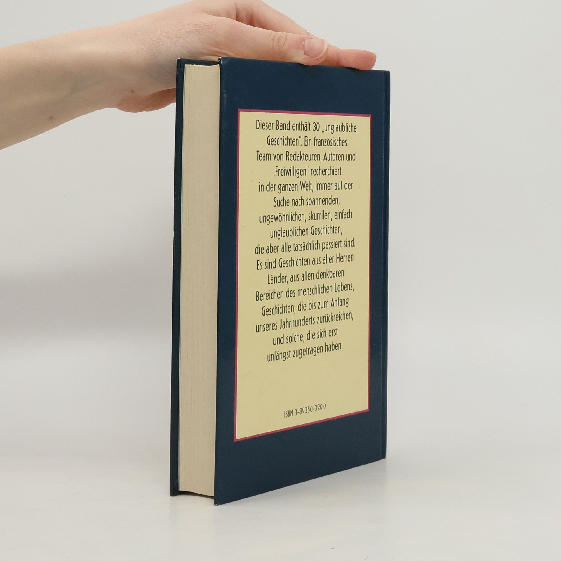 "Deiser Band enthält 30 'unglaubliche Geschichten.' Ein französisches Team von Redakteuren, Autoren und 'Freiwilligen' recherchiert in der ganzen Welt, immer auf der Suche nach spannenden, ungewöhnlichen, skurrilen, einfach unglaublichen Geschichten, die aber alle tatsächlich passiert sind. Es sind Geschichten aus aller Herren Länder, aus allen denkbaren Bereichen des menschlichen Lebens, Geschichten, die bis zum Anfang unseres Jahrhunderts zurüchreichen, und solche, die sich erst unlängst zugetragen haben"--P. 4. of cover.
