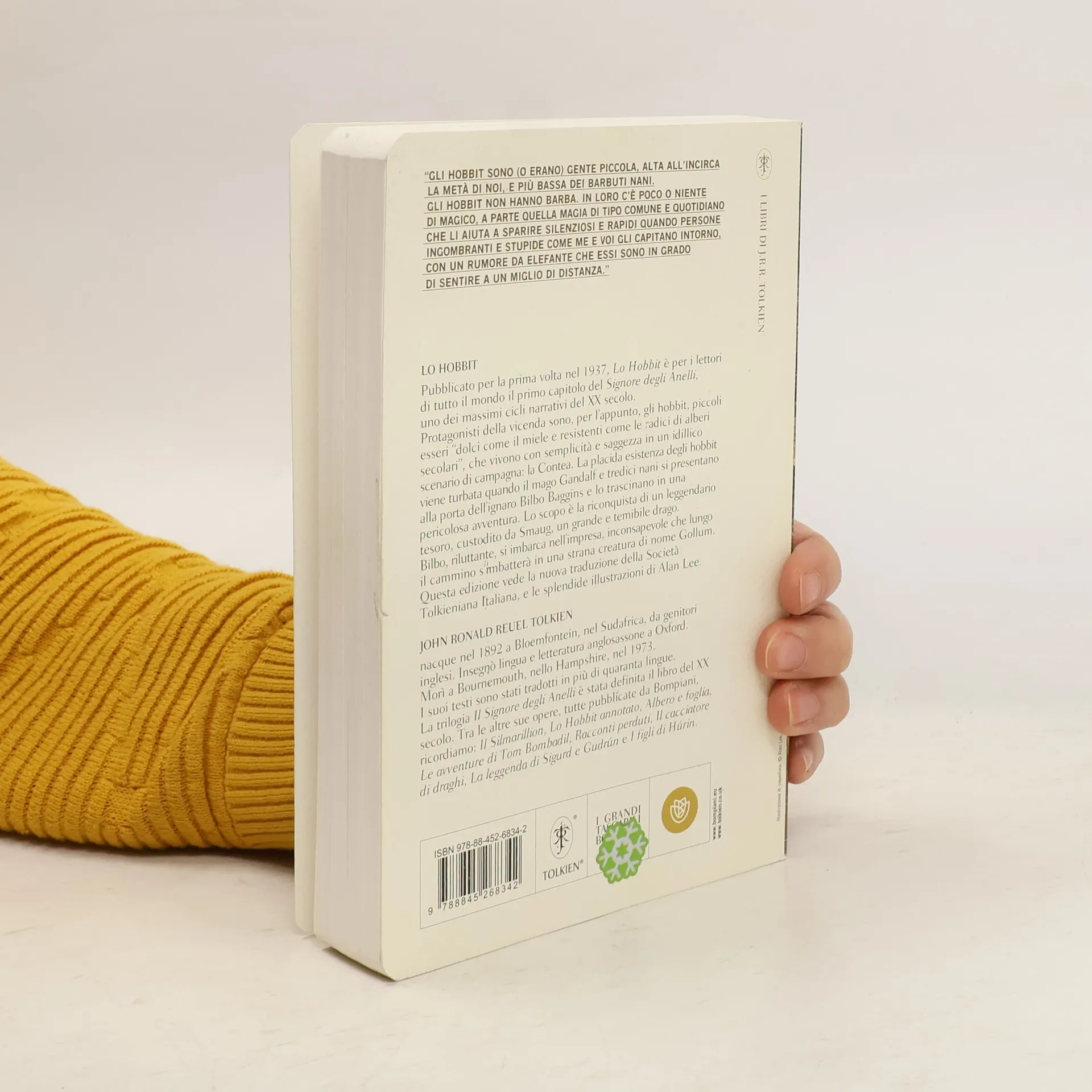 Pubblicato per la prima volta nel 1937, Lo Hobbit è per i lettori di tutto il mondo il primo capitolo del Signore degli Anelli, uno dei massimi cicli narrativi del XX secolo. Protagonisti della vicenda sono, per l’appunto, gli hobbit, piccoli esseri “dolci come il miele e resistenti come le radici di alberi secolari”, che vivono con semplicità e saggezza in un idillico scenario di campagna: la Contea. La placida esistenza degli hobbit viene turbata quando il mago Gandalf e tredici nani si presentano alla porta dell’ignaro Bilbo Baggins e lo trascinano in una pericolosa avventura. Lo scopo è la riconquista di un leggendario tesoro, custodito da Smaug, un grande e temibile drago. Bilbo, riluttante, si imbarca nell’impresa, inconsapevole che lungo il cammino s’imbatterà in una strana creatura di nome Gollum. Questa edizione vede la nuova traduzione della Società Tolkieniana Italiana, e le splendide illustrazioni di Alan Lee.