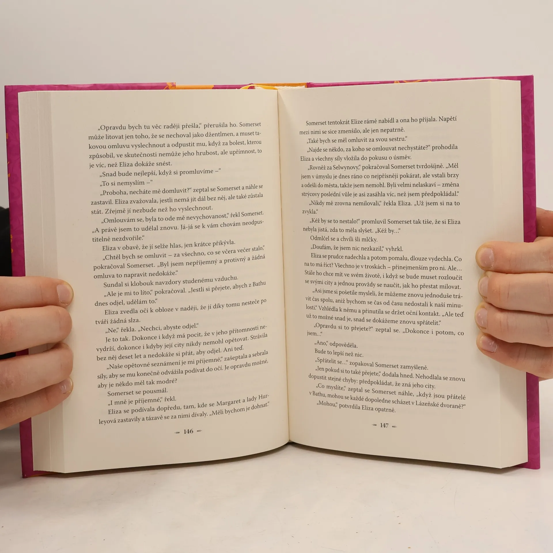 Nesmělá sedmnáctiletá slečna Eliza Balfourová se pod nátlakem rodiny provdala za upjatého hraběte ze Somersetu, o dvacet let staršího než ona, přestože milovala jiného. Když o deset let později ovdověla, před bohatou dědičkou, která se dosud vždy chovala, jak od ní společenská smetánka očekávala, se poprvé otevřela možnost, aby o sobě rozhodovala sama. Ještě než jí skončil smutek, odjela se svou sestřenicí Margaret do Bathu, kde si užívala společenského života, věnovala se kreslení a malování, učila se jezdit s kočárem a flirtovala s přitažlivým novým návštěvníkem, básníkem, nechvalně známým lordem Melvillem. Když se o Elizině pohoršlivém chování dozvídá synovec jejího zesnulého manžela, nynější lord Somerset, právě ten, který jí před deseti lety zlomil srdce, přichází kritická chvíle: podle závěti jejího manžela totiž jen na něm záleží, zda Elize jmění zůstane. Zachová si ho pouze pod podmínkou, že nezpůsobí žádný skandál. Je tedy postavena před volbu žít znovu tak, jak jí diktují dobové společenské normy.