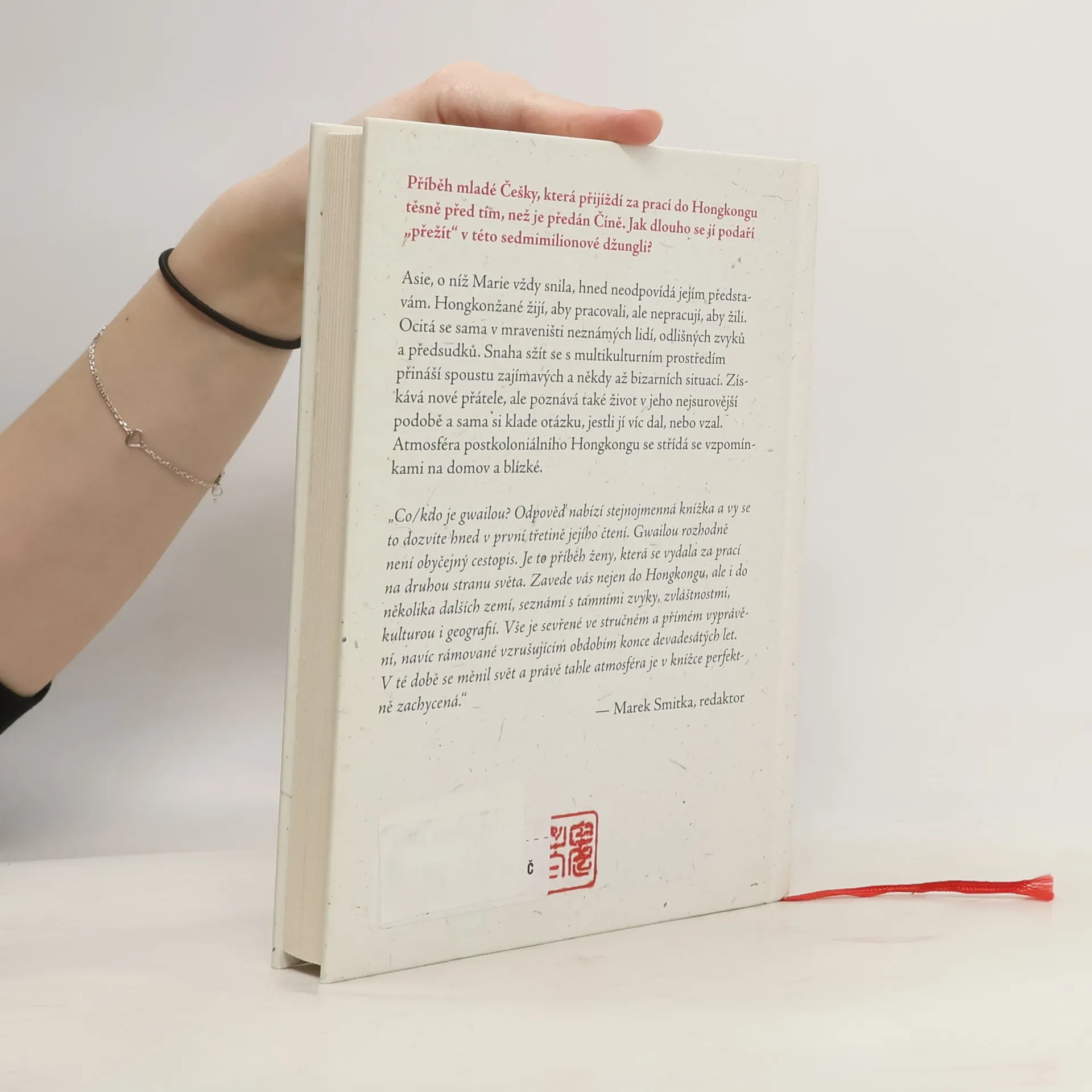 Román o nových začátcích a osudových rozhodnutích. Mladá Marie toužila po cestování do dalekých a exotických míst. Když se jí toto přání splní, není si jista, jestli realita odpovídá jejímu letitému snu. Asie, o níž Marie vždy snila, hned neodpovídá jejím představám. Hongkonžané žijí, aby pracovali, ale nepracují, aby žili. Ocitá se sama v mraveništi neznámých lidí, odlišných zvyků a předsudků. Snaha sžít se s multikulturním prostředím přináší spoustu zajímavých a někdy až bizarních situací. Získává nové přátele, ale poznává také život v jeho nejsurovější podobě a sama si klade otázku, jestli jí víc dal, nebo vzal. Atmosféra postkoloniálního Hongkongu se střídá se vzpomínkami na domov a blízké. Nakladatelská anotace. Kráceno.