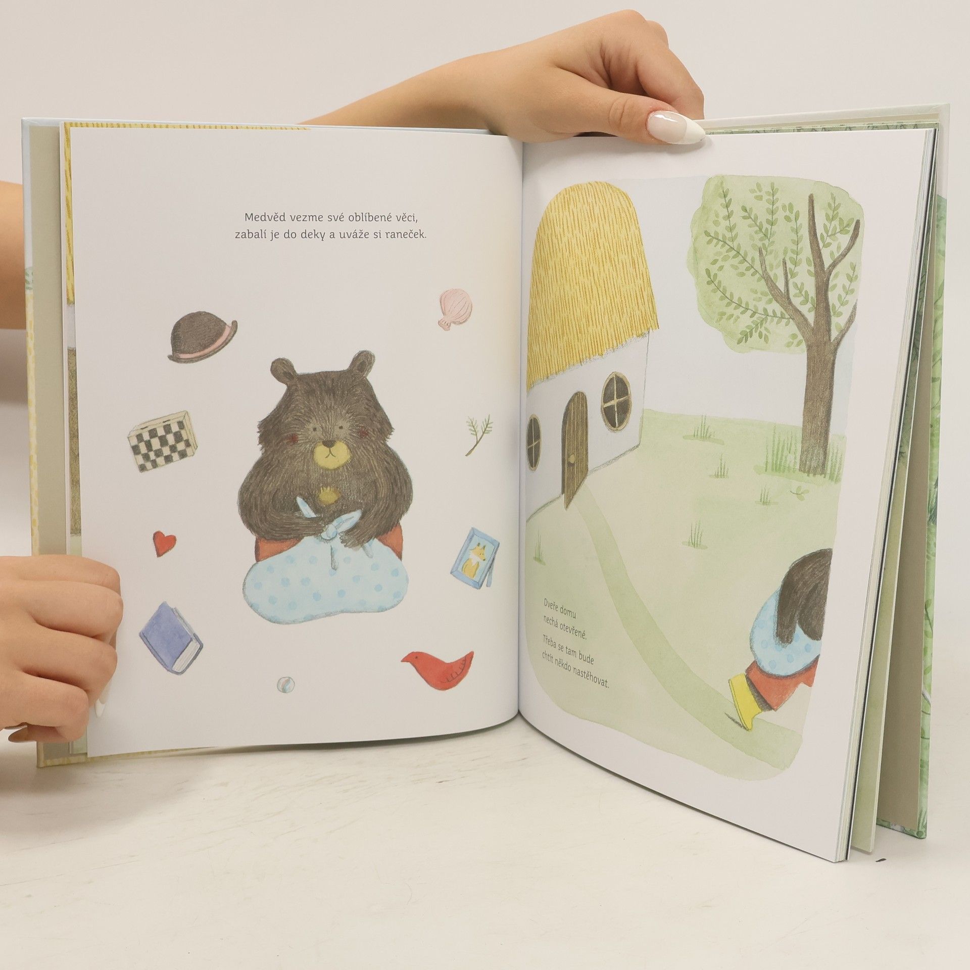 Medvěd měl pěkný dům, milé přátele a příjemný život. Jenže se tu postupem času začal cítit čím dál tím méně doma. Jednoho dne mu vítr ve větvích pošeptal, že je čas odejít. Medvěd si sbalil svých pár švestek a vyrazil na dlouhou cestu. Průzračně jednoduchý a silný příběh o odvaze ke změně a potřebě nových začátků.