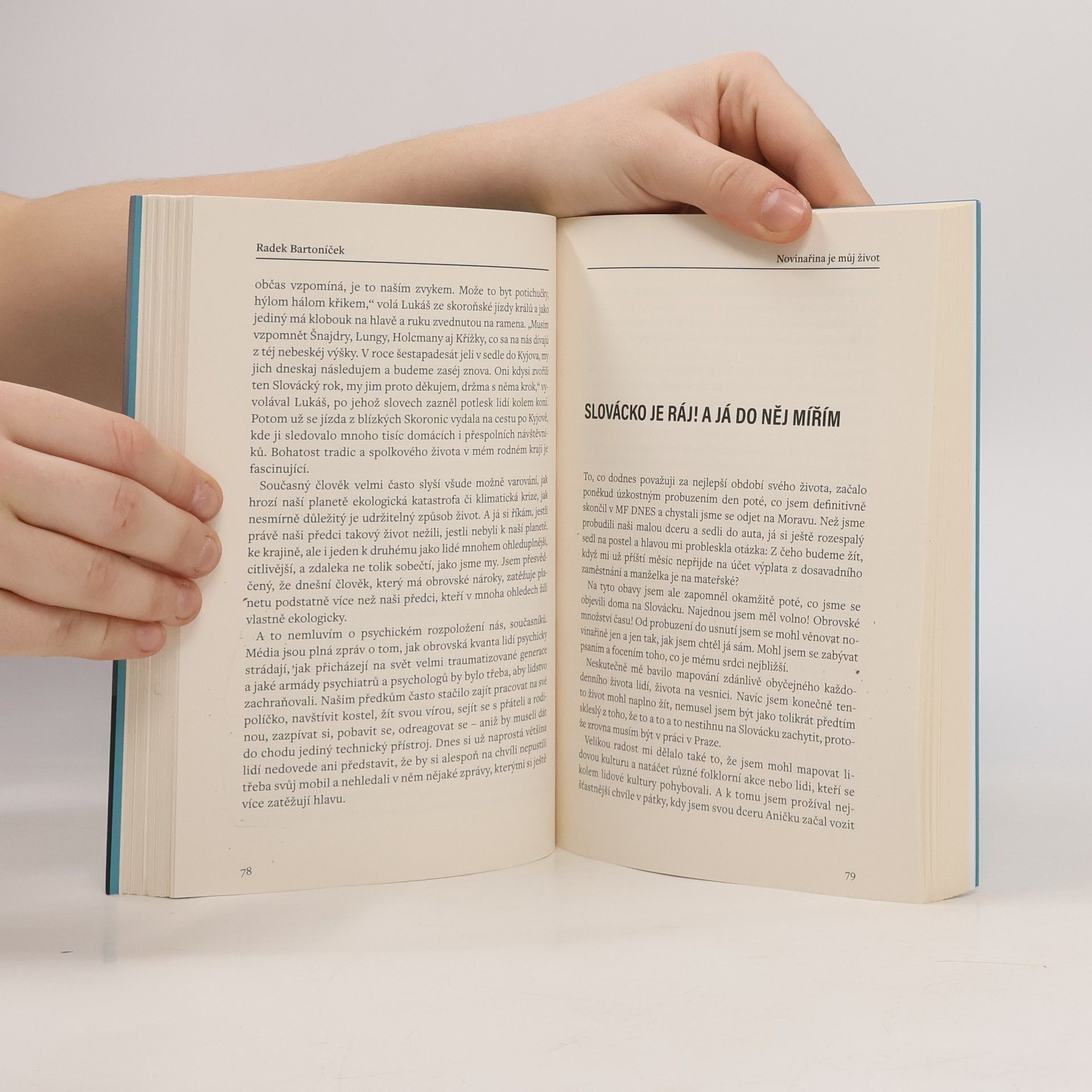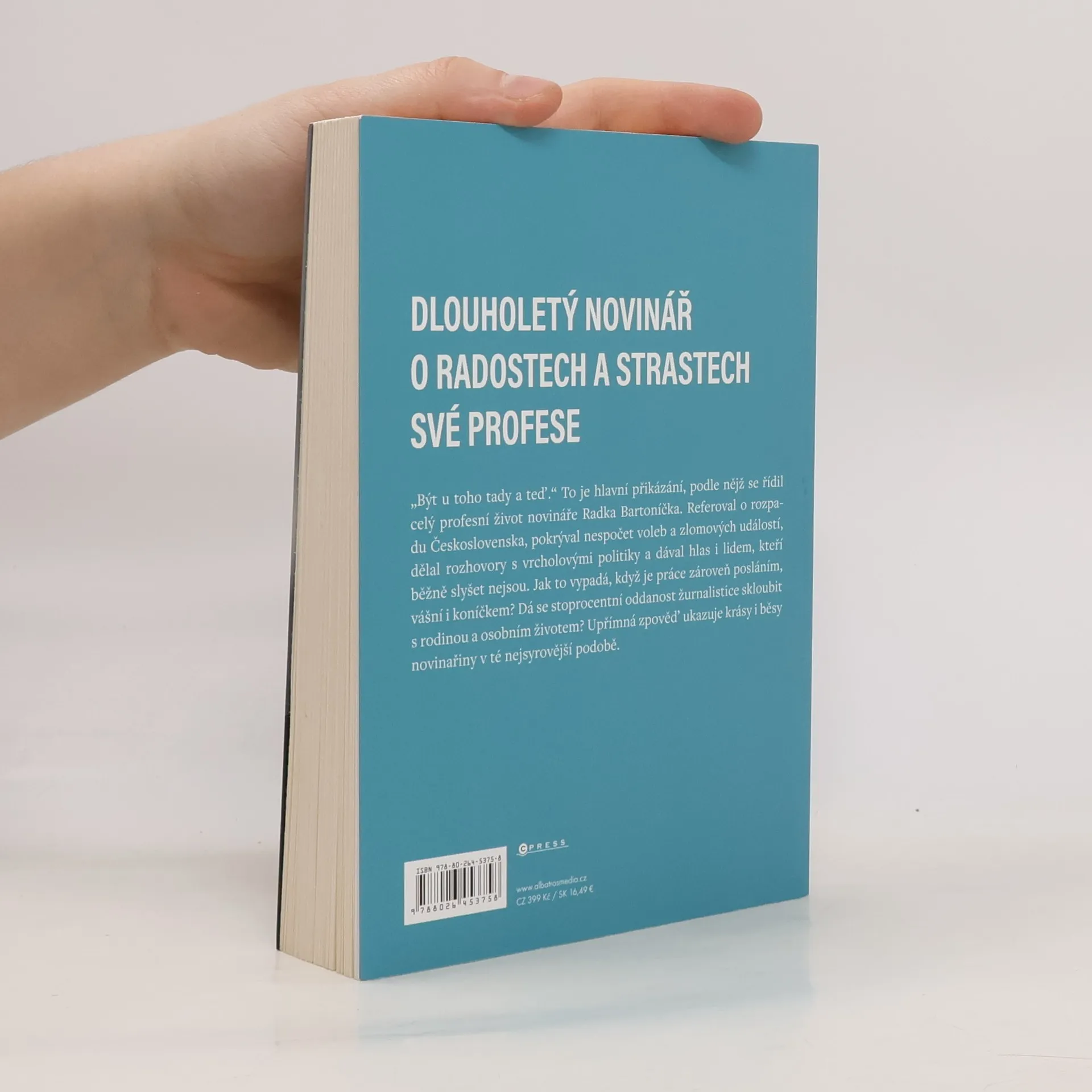 Dlouholetý novinář o radostech a strastech své profese. „Být u toho tady a teď.“ To je hlavní přikázání, podle nějž se řídil celý profesní život novináře Radka Bartoníčka. Referoval o rozpadu Československa, pokrýval nespočet voleb a zlomových událostí, dělal rozhovory s vrcholovými politiky a dával hlas i lidem, kteří běžně slyšet nejsou. Jak to vypadá, když je práce zároveň posláním, vášní i koníčkem? Dá se stoprocentní oddanost žurnalistice skloubit s rodinou a osobním životem? Upřímná zpověď ukazuje krásy i běsy novinařiny v té nejsyrovější podobě.
