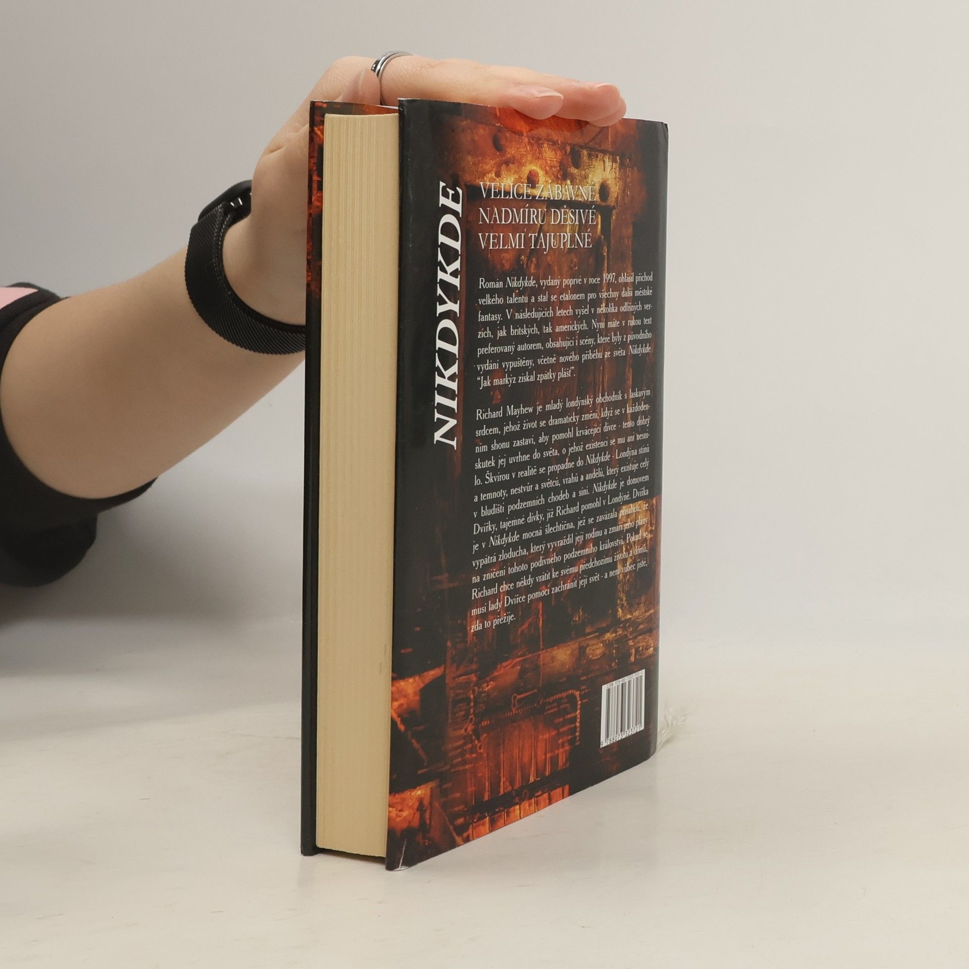 Román Nikdykde, vydaný poprvé v roce 1997, ohlásil příchod velkého talentu a stal se etalonem pro všechny další městské fantasy. V následujících letech vyšel v několika verzích, jak britských, tak upravených pro Američany. Nyní máte v rukou text preferovaný autorem, obsahující i scény, které byly z původního vydání vypuštěny. Richard Mayhew je mladý londýnský obchodník s laskavým srdcem, jehož život se drasticky změní, když se v každodenním shonu zastaví, aby pomohl krvácející dívce – tento dobrý skutek jej uvrhne do světa, o jehož existenci se mu ani nesnilo. Škvírou v realitě se propadne do Nikdykde – Londýnu stínů a temnoty, nestvůr a světců, vrahů a andělů, jenž existuje celý v bludišti podzemních chodeb a síní. Nikdykde je domovem Dvířky, tajemné dívky, které Richard pomohl v Londýně nad zemí. Ta je v Nikdykde mocná šlechtična, jež se zavázala přísahou, že vypátrá zloducha, který vyvraždil její rodinu a zmaří jeho plány na zničení toho podivného podzemního království. Pokud se Richard chce někdy vrátit ke svému předchozímu životu a domů, musí lady Dvířka pomoci zachránit její svět – a není vůbec jisté, zda to přežije.
