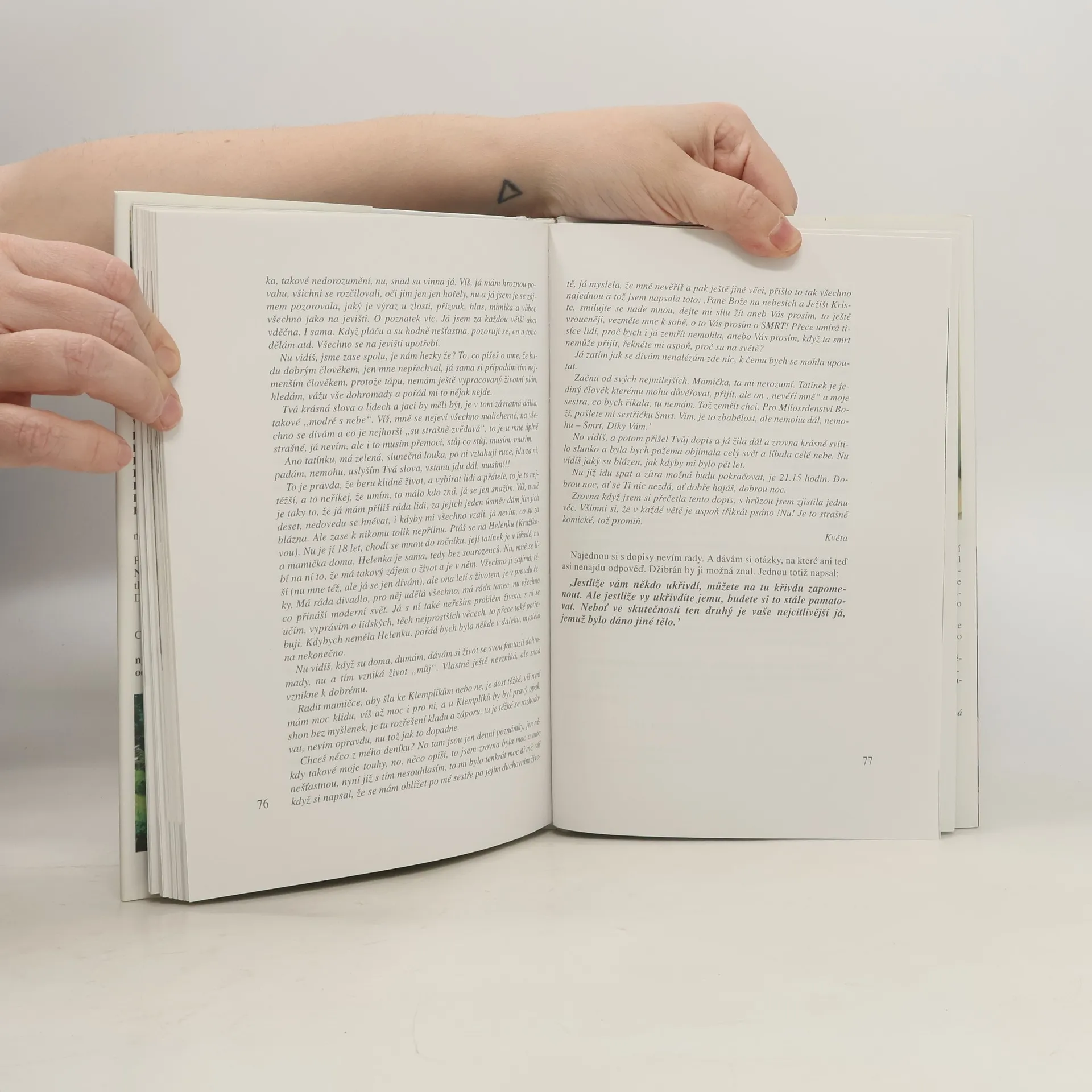 Květa Fialová o sobě, aneb ... čím hůře, tím lépe. Tento podtitul je nejen výmluvný, ale i charakteristický pro divadelní a filmovou herečku, která proslula svým černým humorem. Sedmnáct kapitol pojednává o životních osudech Květy Fialové, jejích názorech na manželství, sex a morálku. Osobním guru se jí stal Chalíl Džíbrán, z jehož Proroka často cituje, a jehož filosofií se od mládí řídí. O divadle a filmu se zmiňuje jen na okraj.