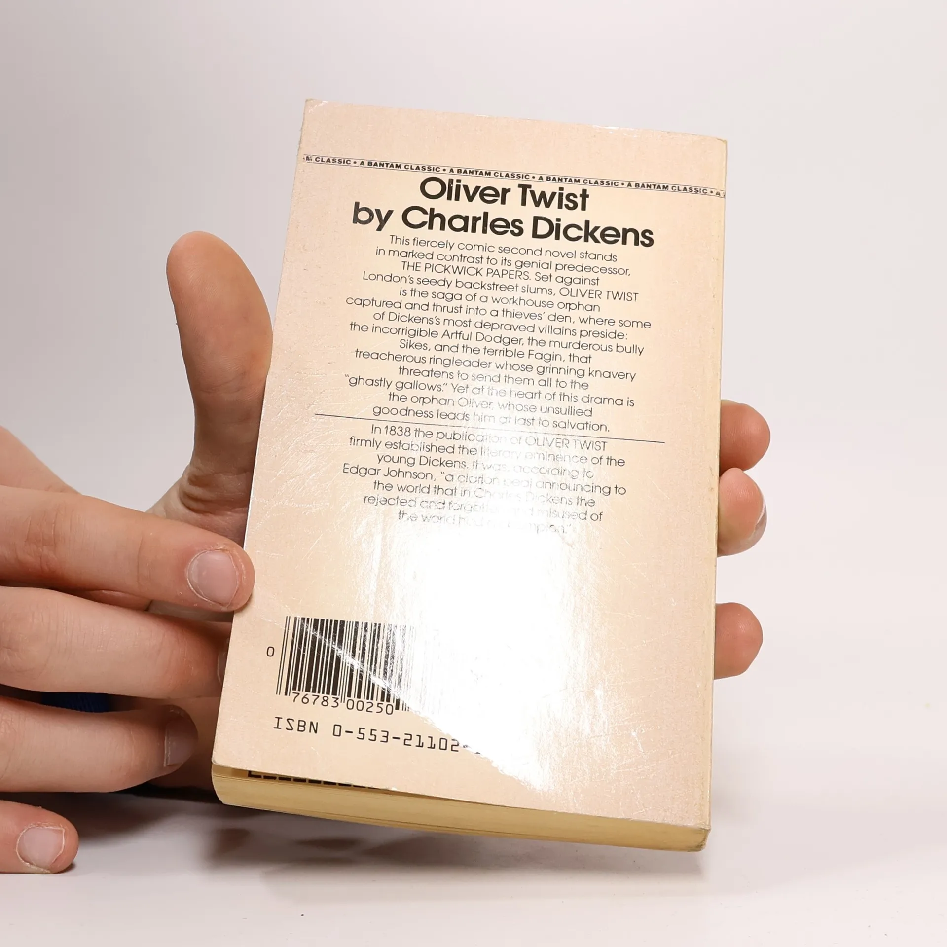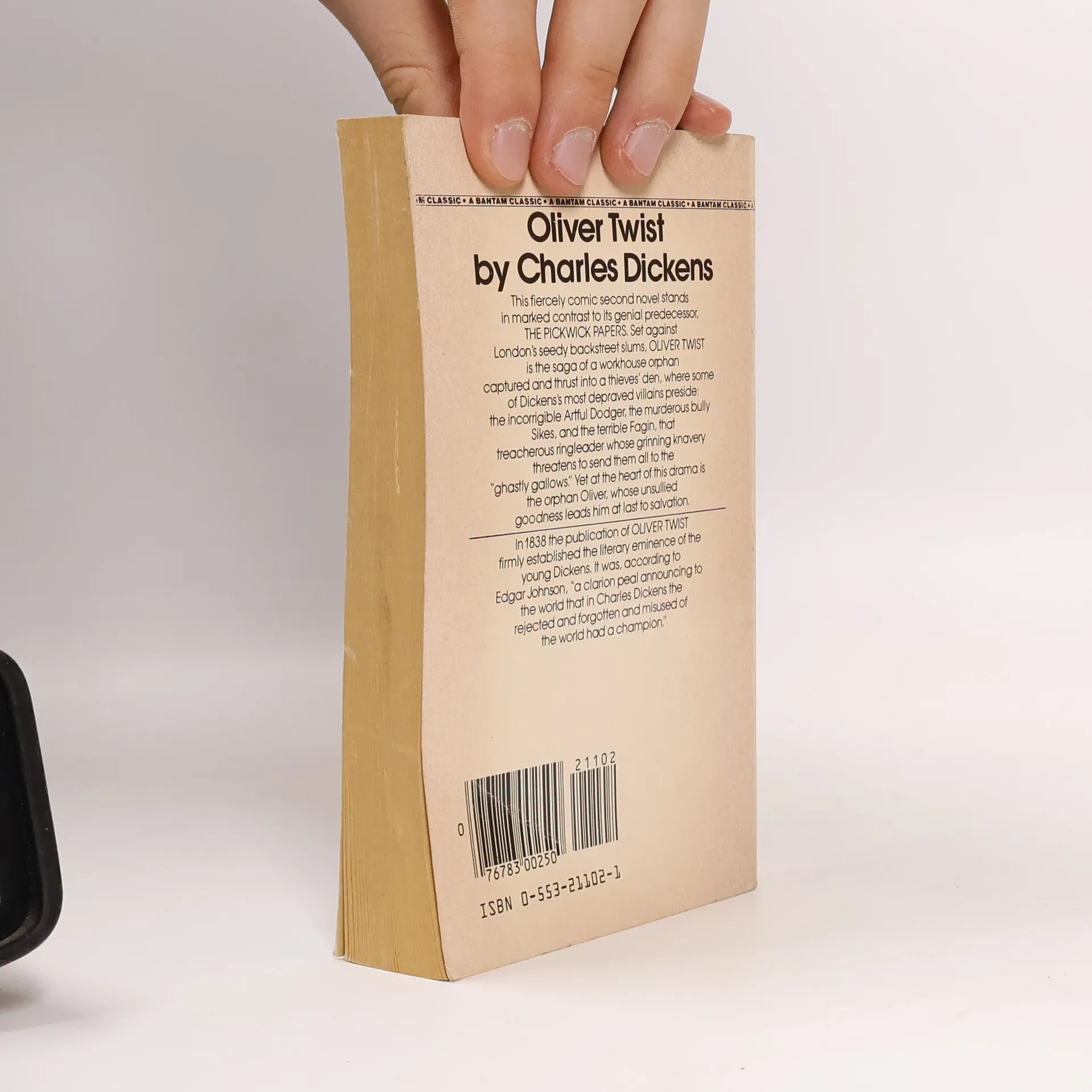 This fiercely comic tale stands in marked contrast to its genial predecessor, The Pickwick Papers. Set against London's seedy back street slums, Oliver Twist is the saga of a workhouse orphan captured and thrust into a thieves' den, where some of Dickens's most depraved villains preside: the incorrigible Artful Dodger, the murderous bully Sikes, and the terrible Fagin, that treacherous ringleader whose grinning knavery threatens to send them all to the "ghostly gallows." Yet at the heart of this drama is the orphan Oliver, whose unsullied goodness leads him at last to salvation. In 1838 the publication of Oliver Twist firmly established the literary eminence of young Dickens. It was, according to Edgar Johnson, "a clarion peal announcing to the world that in Charles Dickens the rejected and forgotten and misused of the world had a champion."