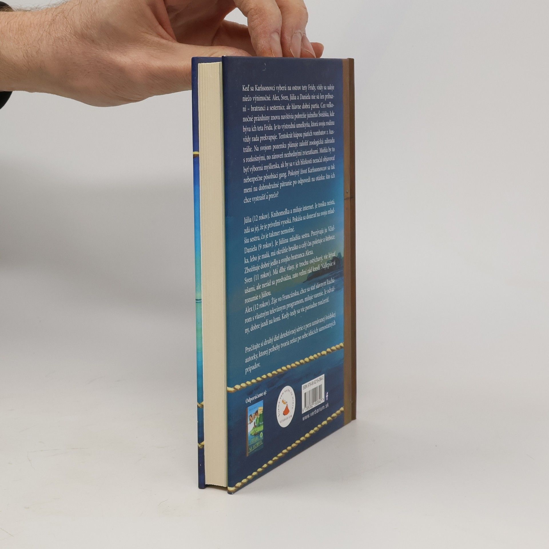 Keď sa Karlssonovci vyberú na ostrov tety Fridy, vždy sa udeje niečo výnimočné. Alex, Sven, Júlia a Včielka nie sú len príbuzní - bratranci a sesternice, ale hlavne dobrá partia. Cez veľkonočné prázdniny znovu navštívia pobrežie južného Švédska, kde býva ich teta Frida. Je to výstredná umelkyňa, ktorá svoju rodinu vždy rada prekvapuje. Tentokrát kúpou piatich vombatov z Austrálie. Na svojom pozemku plánuje založiť zoologickú záhradu s rozkošnými, no zároveň nezbednými zvieratkami. Mohla by to byť výborná myšlienka, ak by sa v ich blízkosti nezačal objavovať nebezpečne pôsobiaci gang. Pokojný život Karlssonovcov sa tak mení na dobrodružné pátranie po odpovedi na otázku: Kto ich chce vystrašiť a prečo?