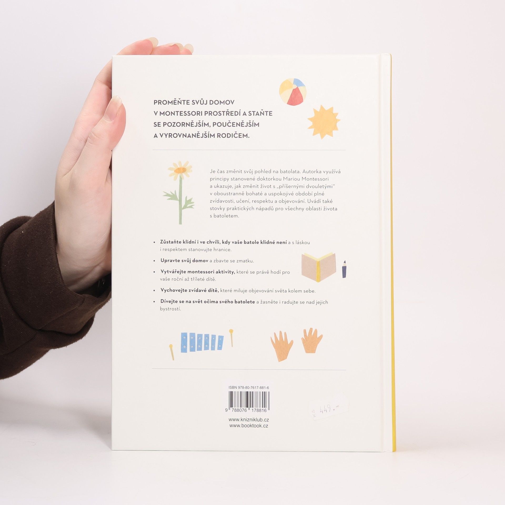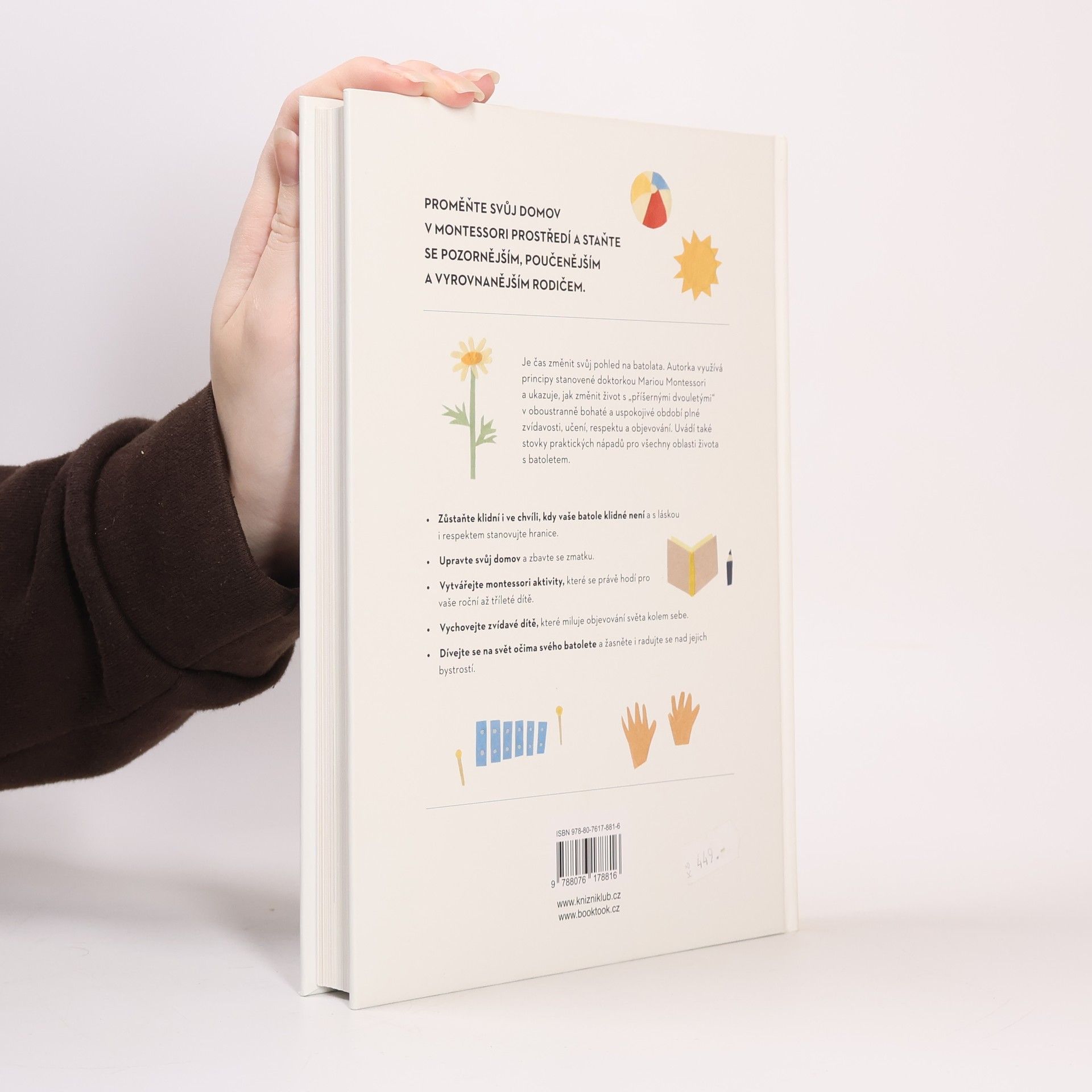 Srozumitelná a komplexní příručka k výchově batolat podle Montessori. Chcete najít způsob, jak si výchovu batolete víc užívat? Povzbuzovat svoje dítě k tomu, aby se rádo učilo? Dosáhnout toho, že dítě spolupracuje, aniž byste na něj křičeli, nebo se opakovali? Pak je tahle kniha pro vás to pravé. Montessori přístup vede děti k tomu, aby samy objevovaly svět vlastníma rukama a přebíraly odpovědnost, když je potřeba, zatímco dospělí fungují jako vedení. Tato kniha nabízí jednoduché, praktické rady, jak uplatnit zásady učení Montessori do každodenního života s dítětem ve věku do tří let.